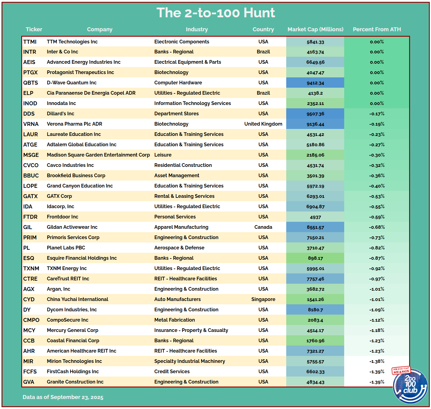 For the purposes of this Special Report, we are only focusing on the small-cap members of the 2-to-100 Club. We ran this scan on growth companies between $1-10 Billion in market-cap.