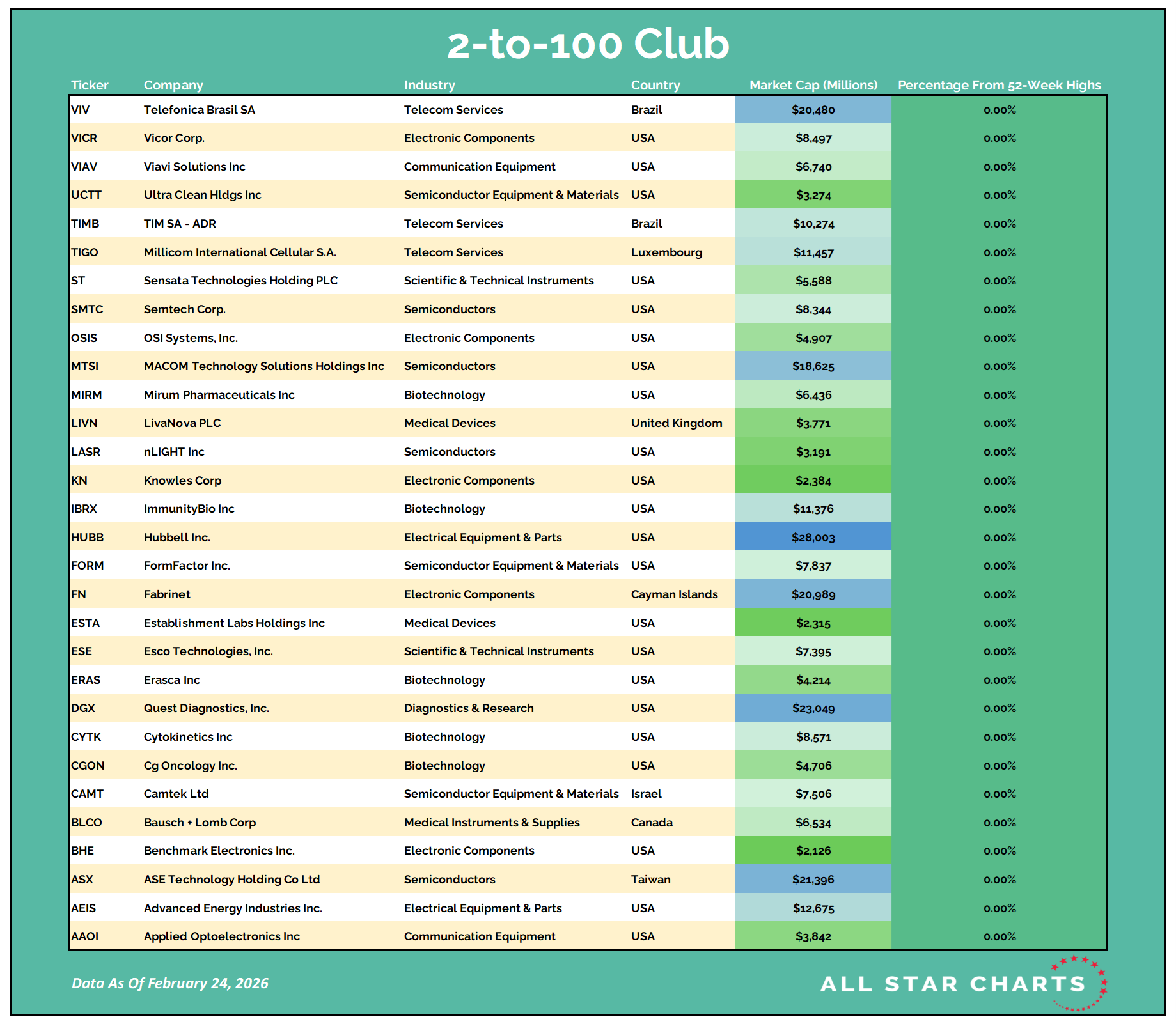 Once they graduate from small-cap to mid-cap status (over $2B), they come on our radar. Likewise, when they surpass the roughly $30B mark, they roll off our list.