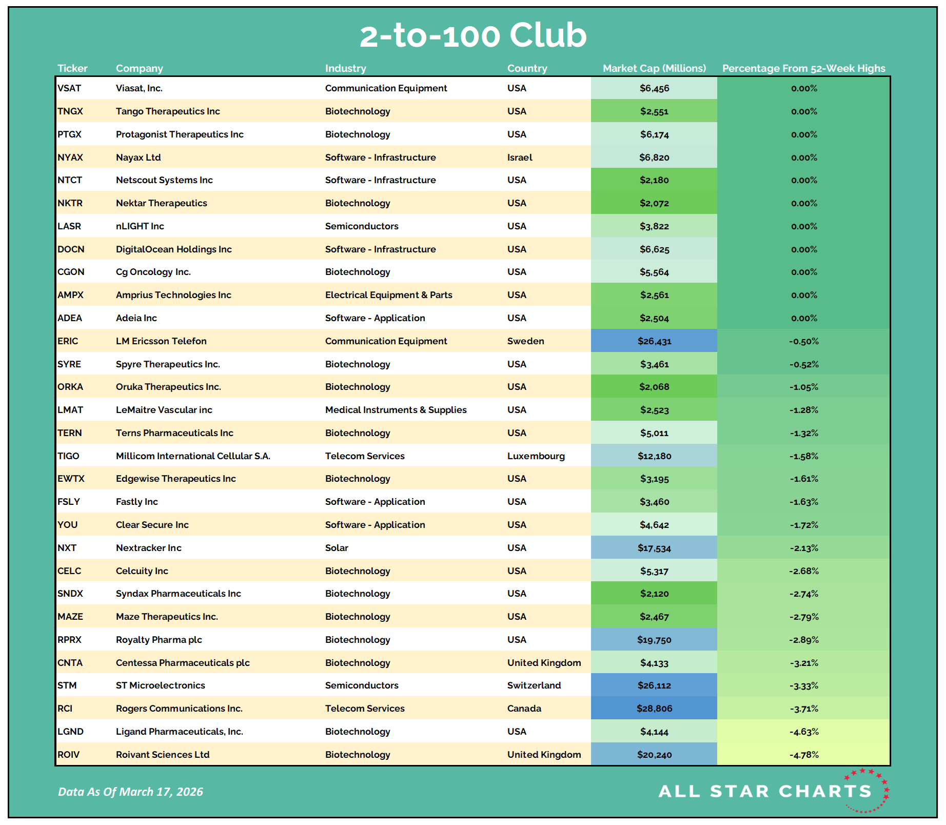 Once they graduate from small-cap to mid-cap status (over $2B), they come on our radar. Likewise, when they surpass the roughly $30B mark, they roll off our list.