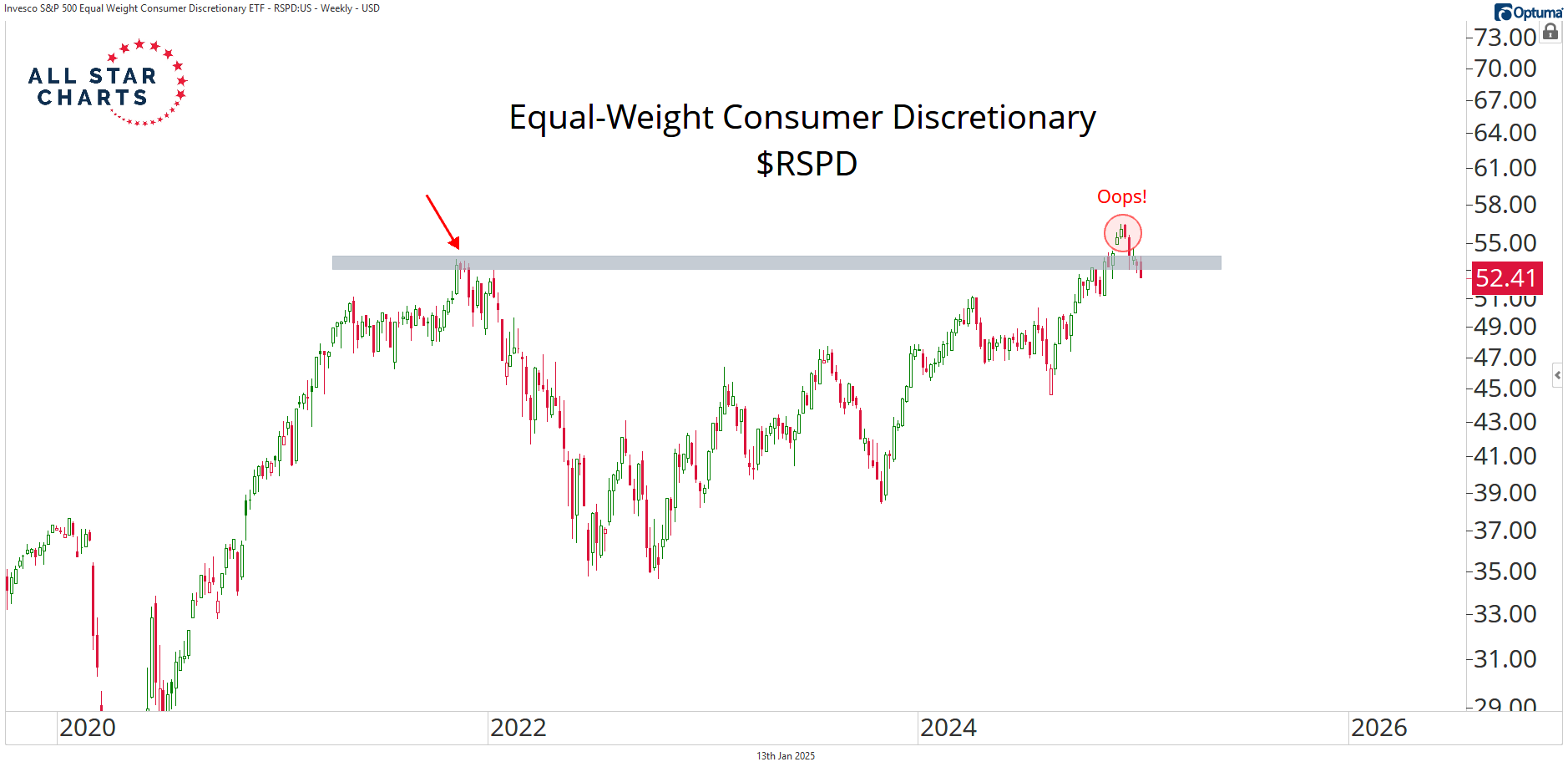 Let’s start with the Equal-Weight Consumer Discretionary $RSPD: