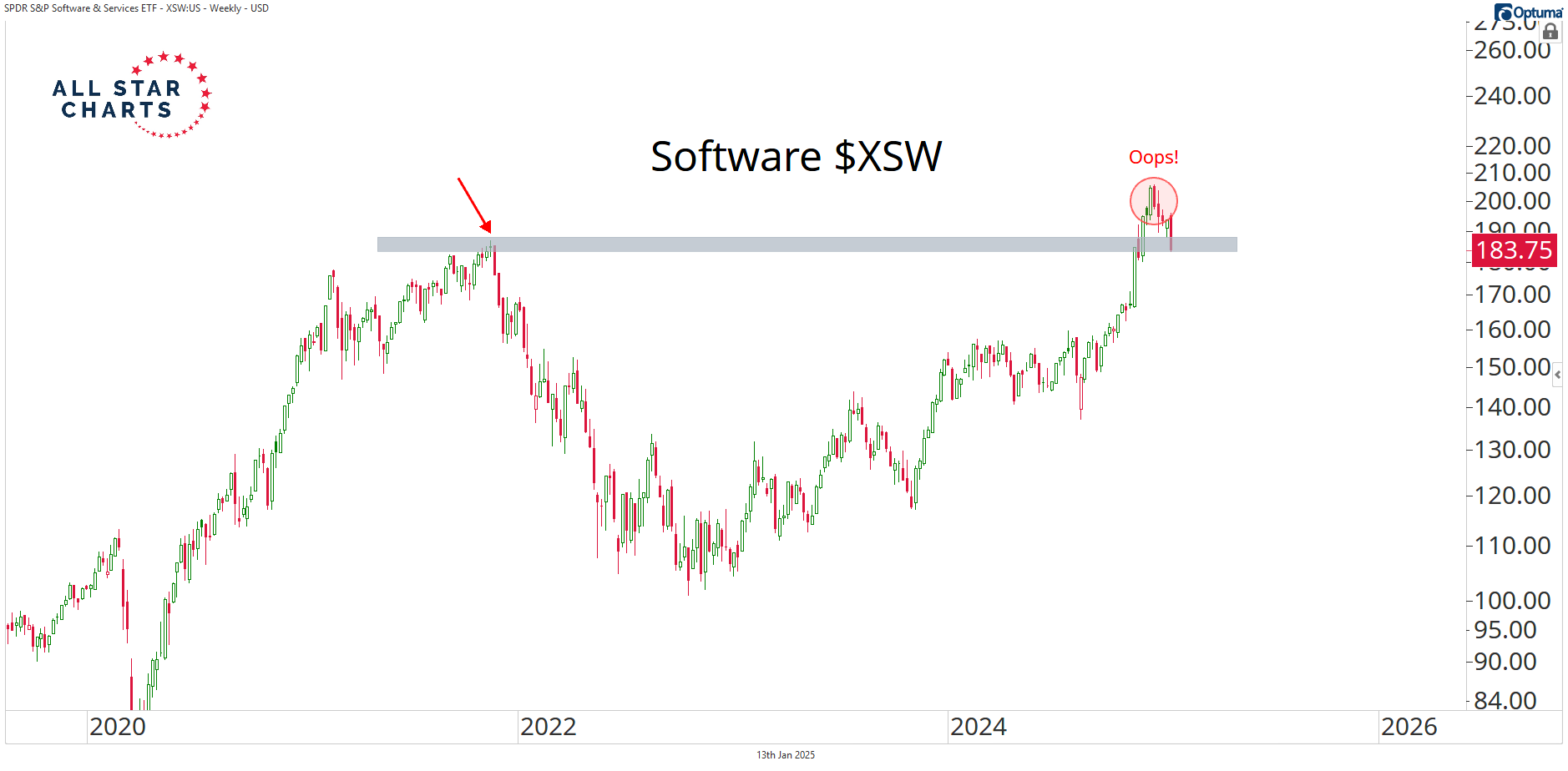 Here’s what the equally-weighted Software Index $XSW looks like: