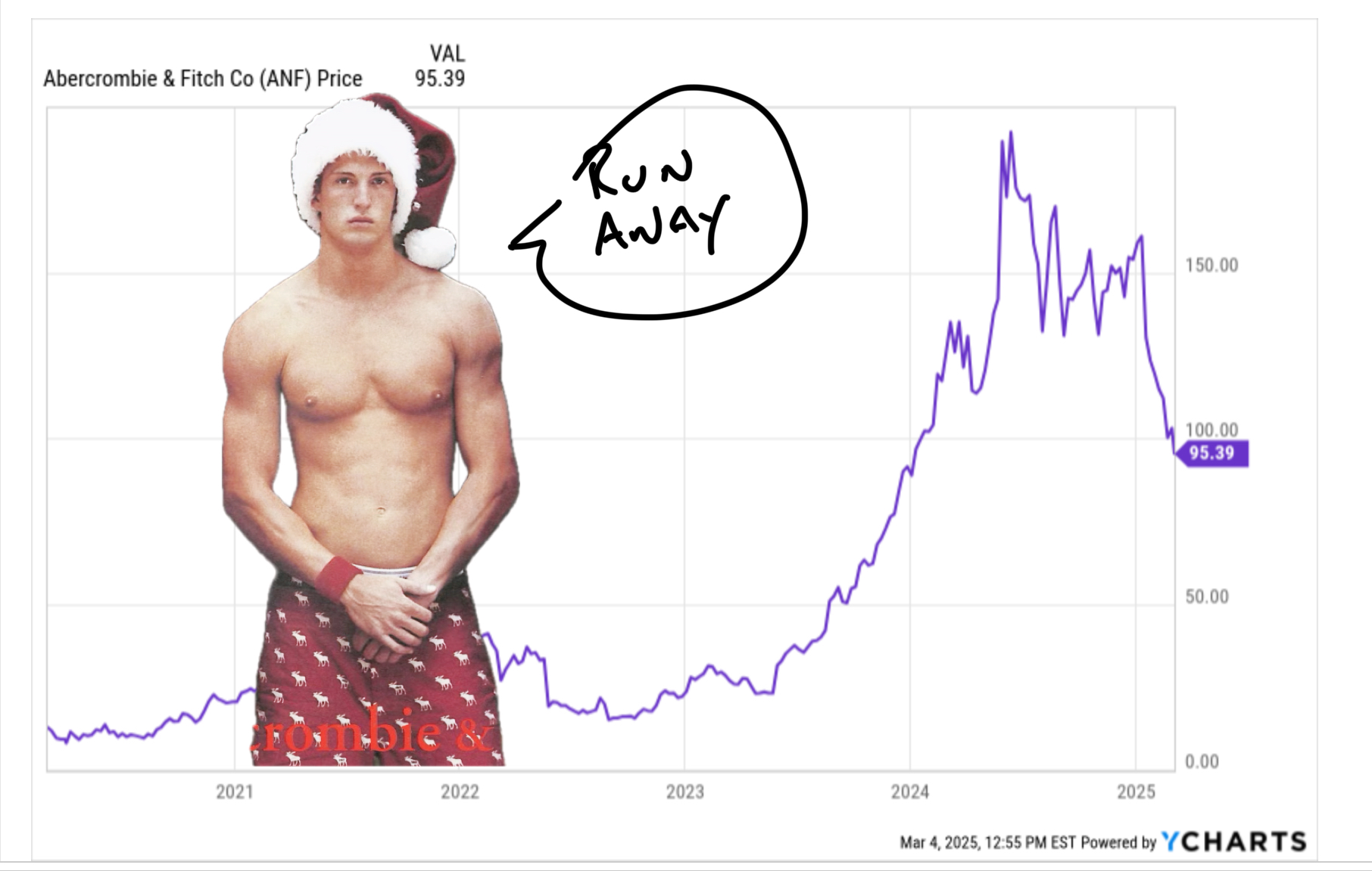 Every stock in the mall is getting obliterated on Tariff headlines and slow spending. Finding dips to buy and places to hide.