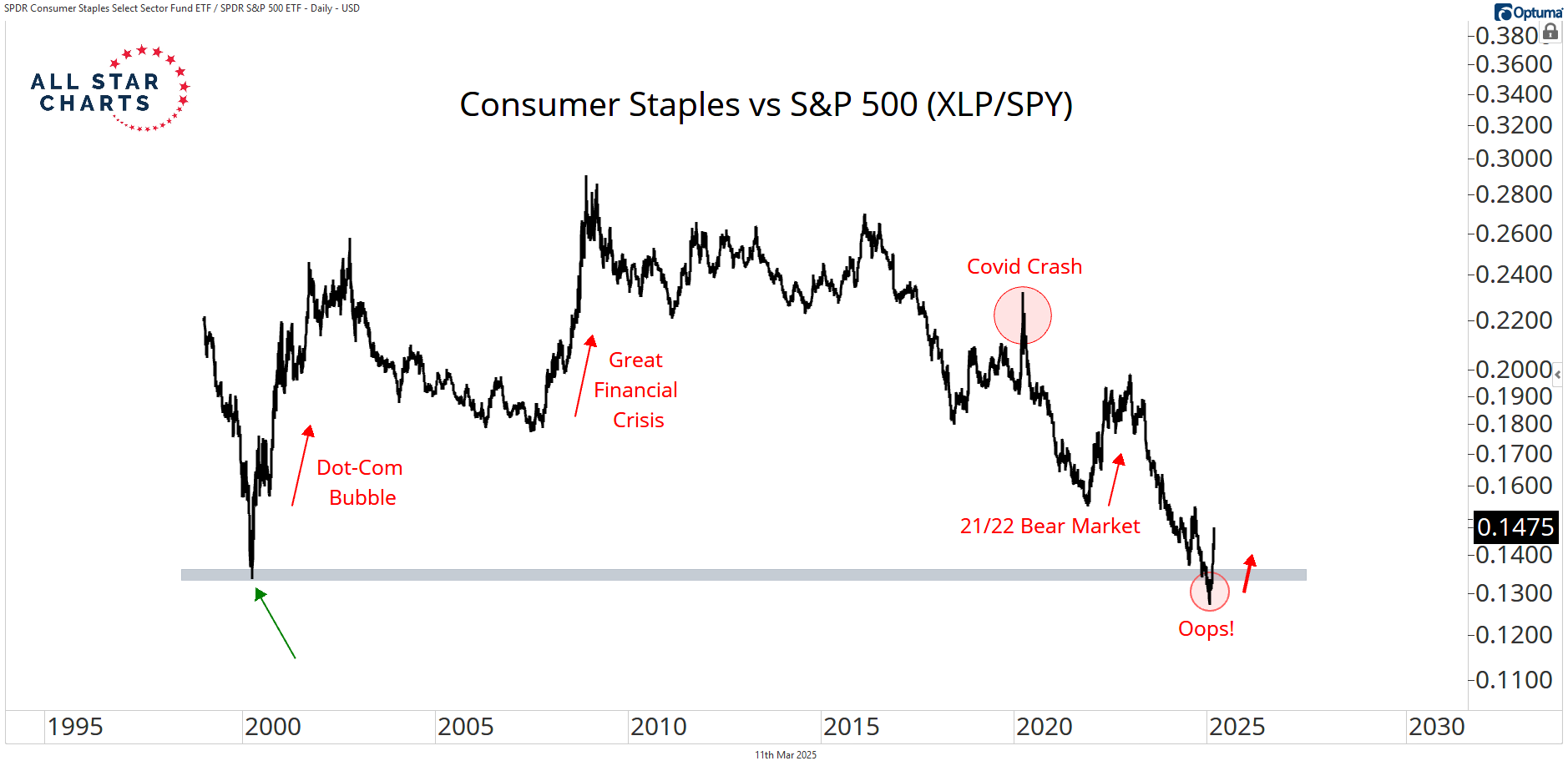 But there is one more chart I need to share with you—Consumer Staples on a relative basis.