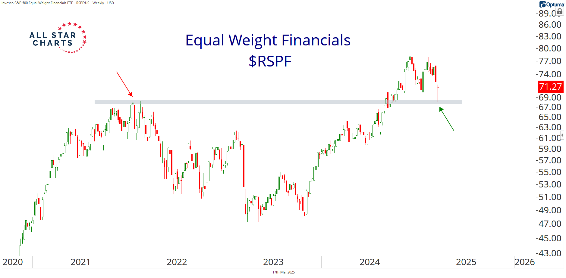 A prime example is the Equal Weight Financials $RSPF.