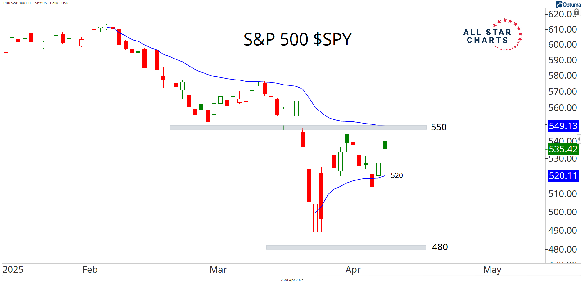 If sellers step in and we break back below 520, we’re likely heading straight toward the April lows around 480 — which just so happen to line up with the prior cycle’s highs.