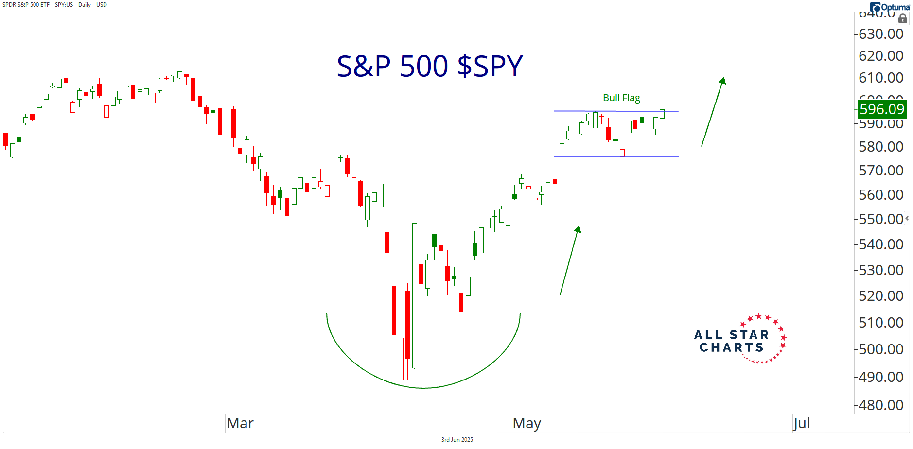 Measuring the flagpole off the April lows gives us a target of ~700.