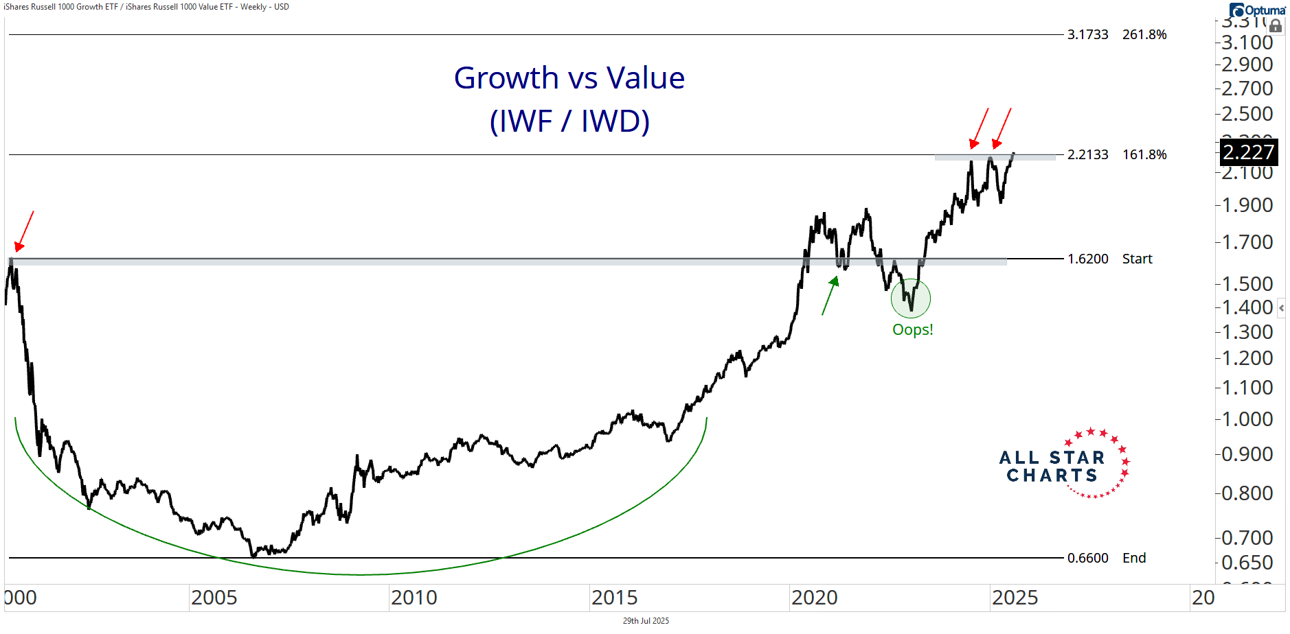 Here you have the Large-cap Growth vs Value ratio back at a critical level of interest.