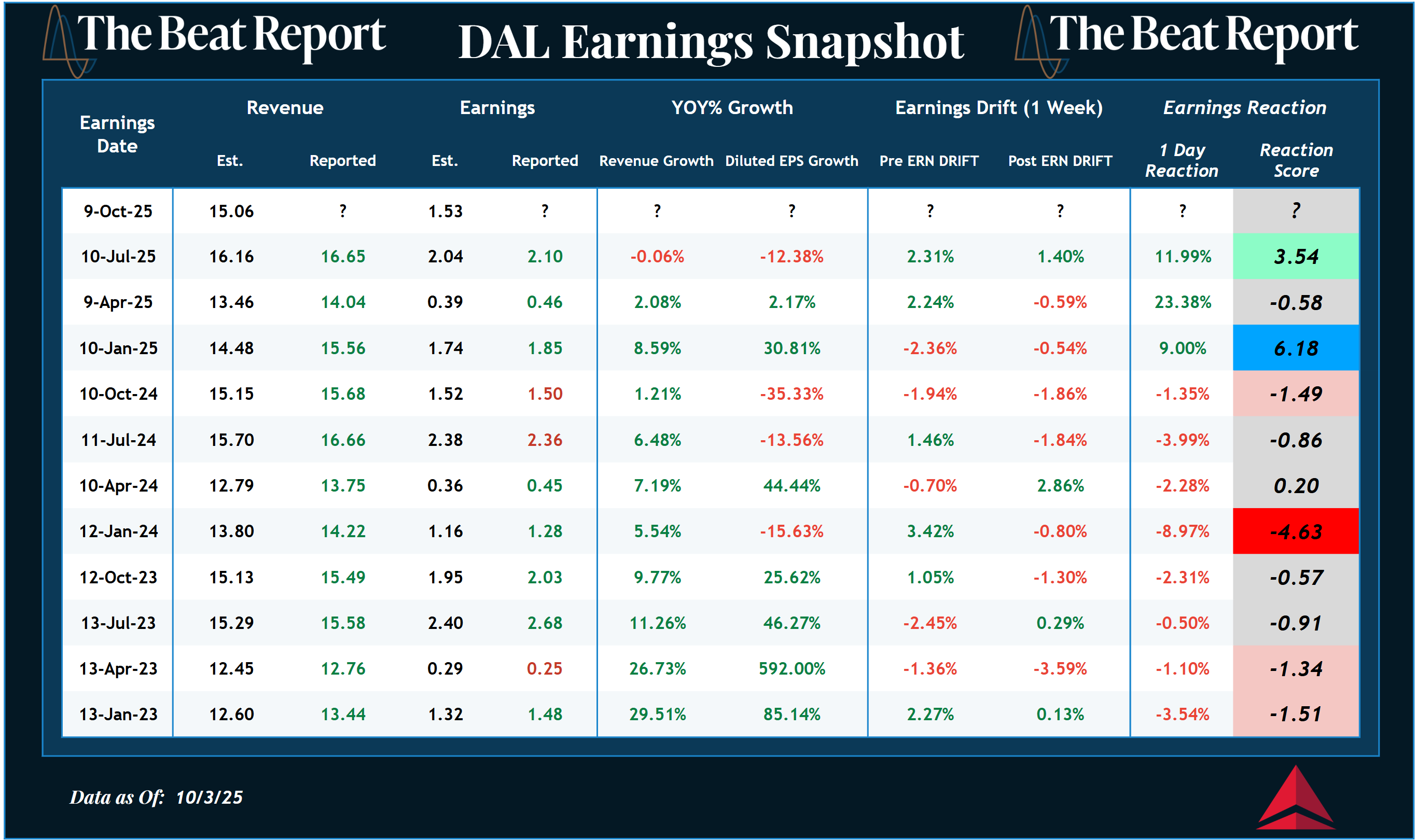 Here are the past 3 years of earnings results & reactions for DAL ๐Ÿ‘‡