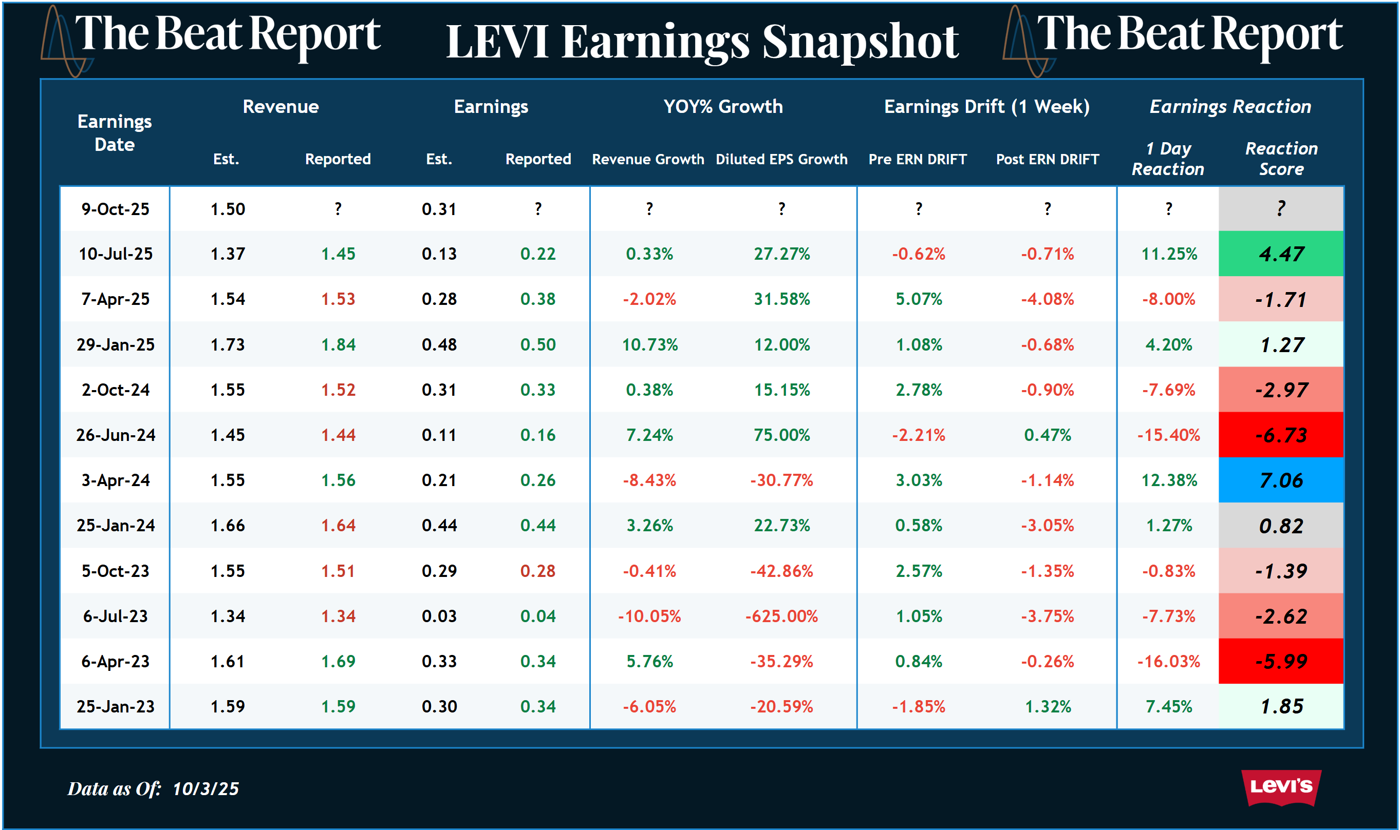 Here's the setup in LEVI ahead of Thursday's earnings report ๐Ÿ‘‡