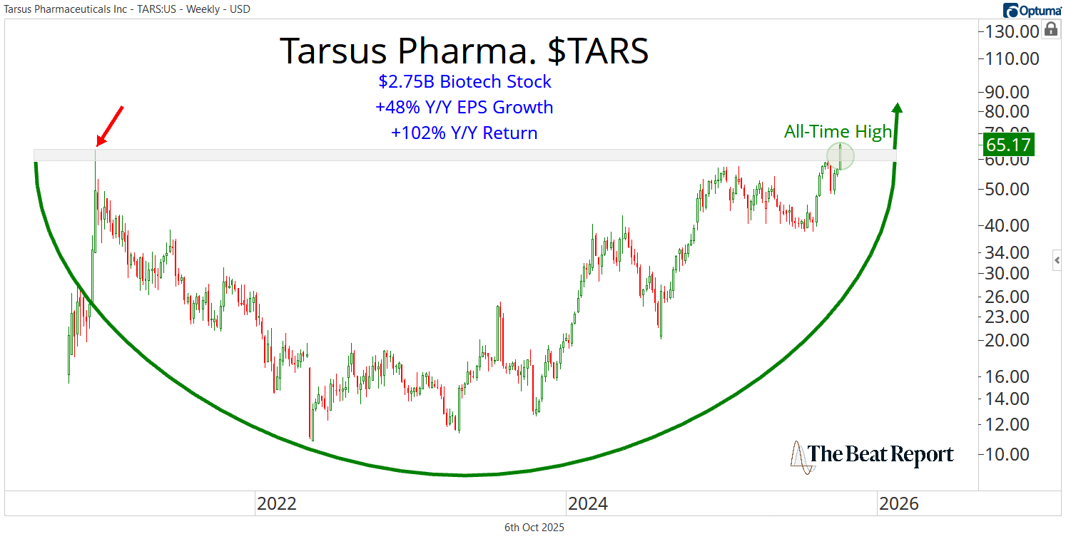 After years of churning sideways, Tarsus Pharmaceuticals closed last week at a new all-time high, clearing its post-IPO peak from late 2020.