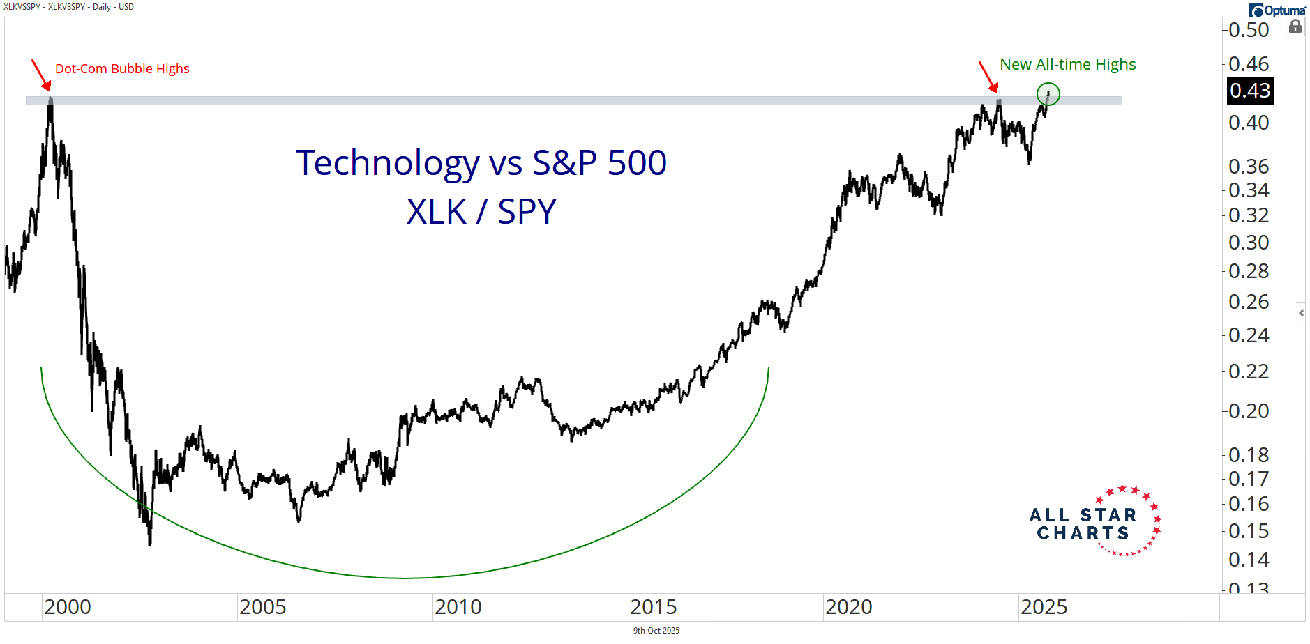 The Technology Sector $XLK just broke out above its old dot-com bubble highs relative to the S&P 500 $SPY.