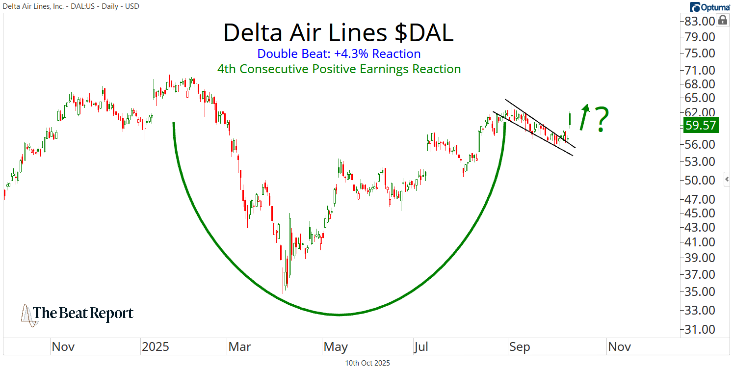 Delta Air Lines had a +4.3% post-earnings reaction, and here's what happened:
