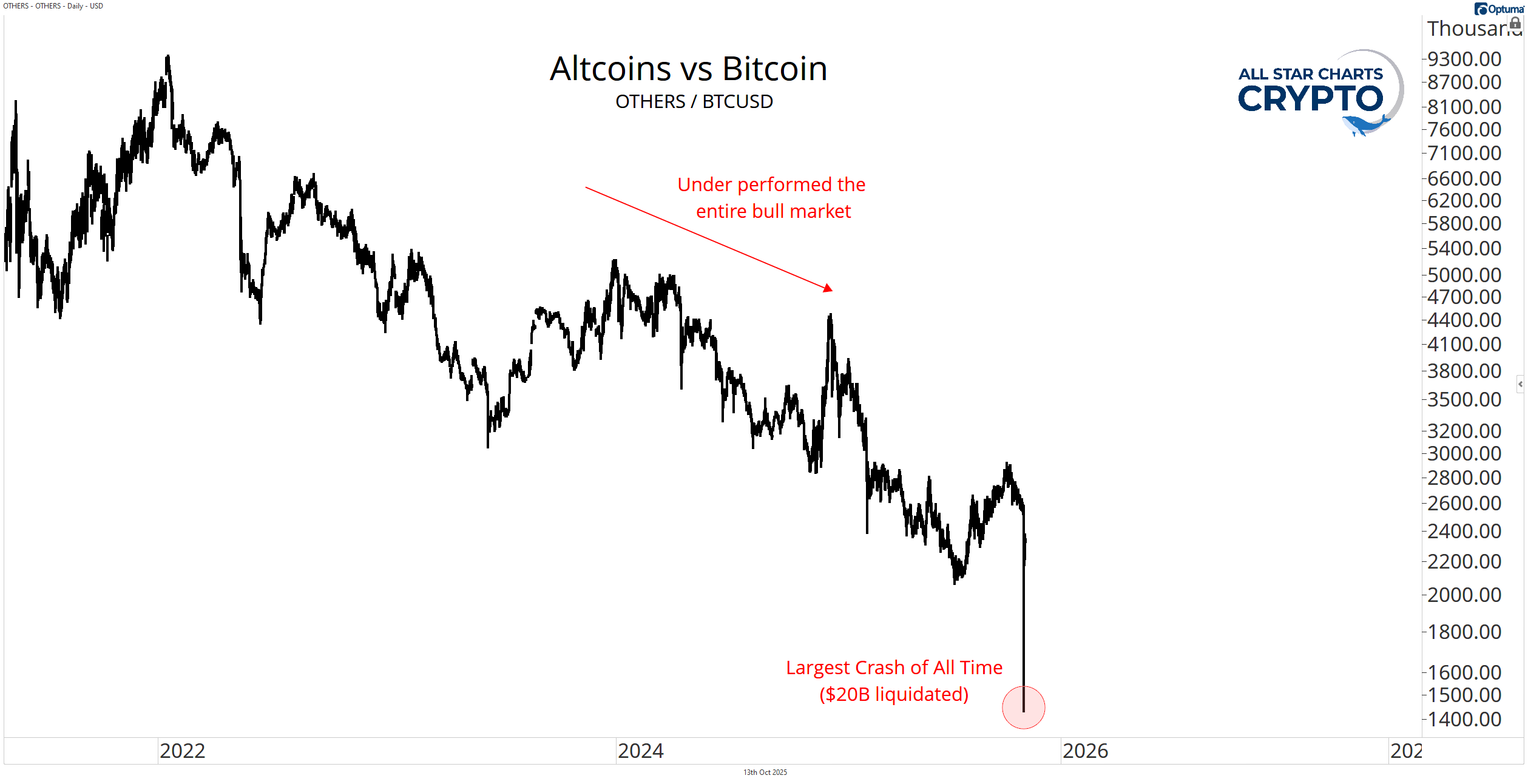 Altcoins have lagged Bitcoin all cycle.