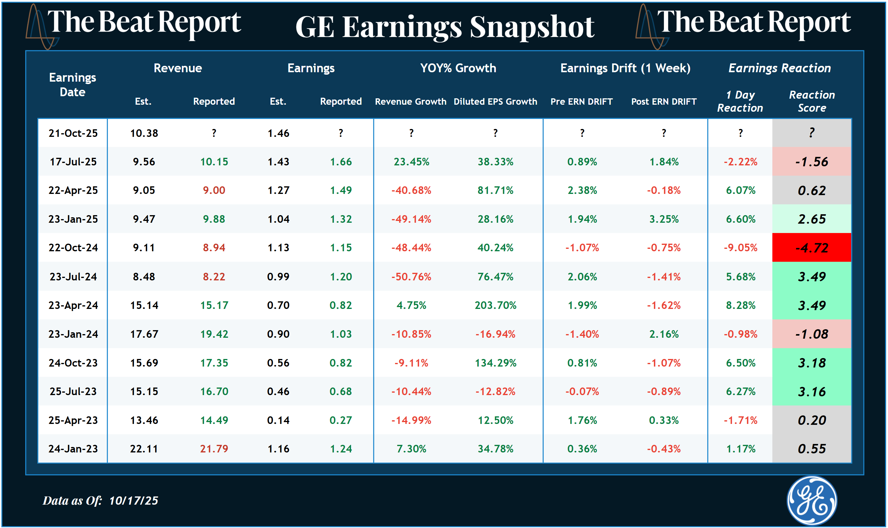 Here are the past 3 years of earnings results & reactions for GE πŸ‘‡