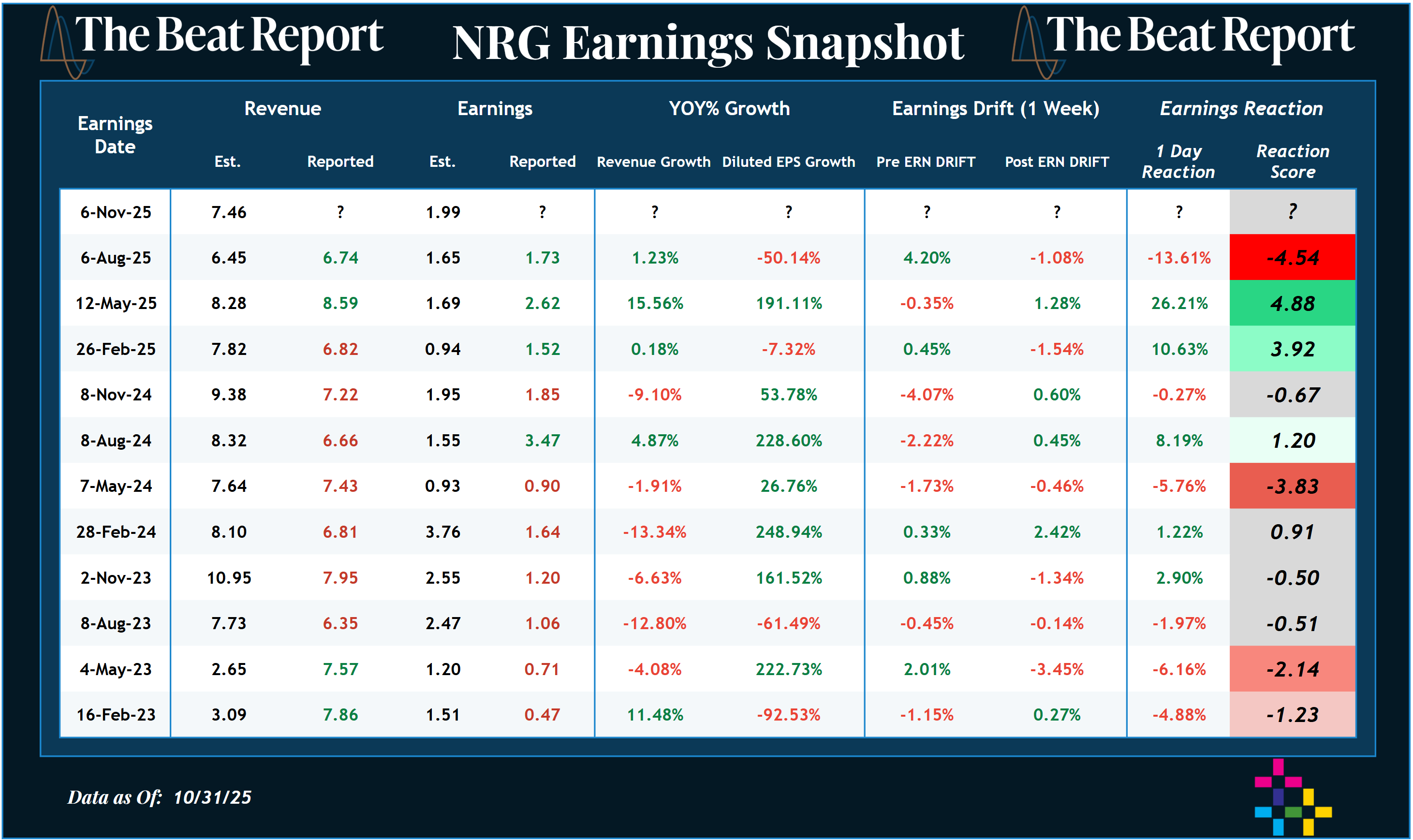 Here's the setup in NRG ahead of Thursday's earnings report 👇