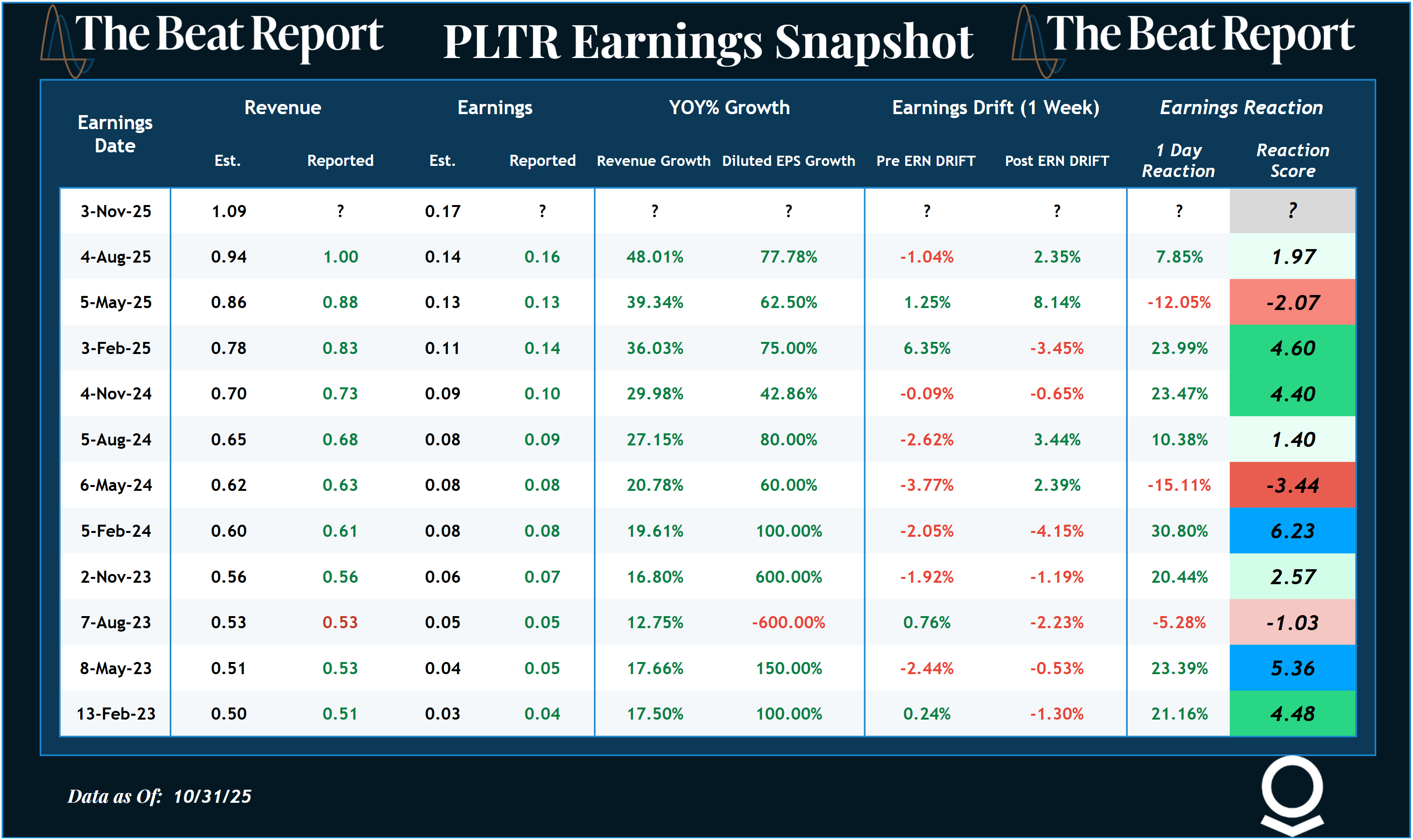 Here are the past 3 years of earnings results & reactions for PLTR 👇