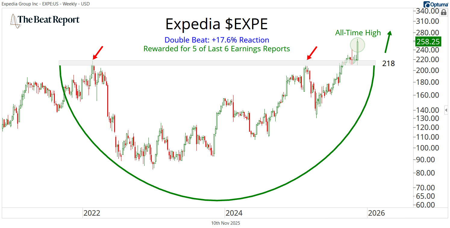 EXPE has been rewarded for five of its last six earnings reports πŸ”₯