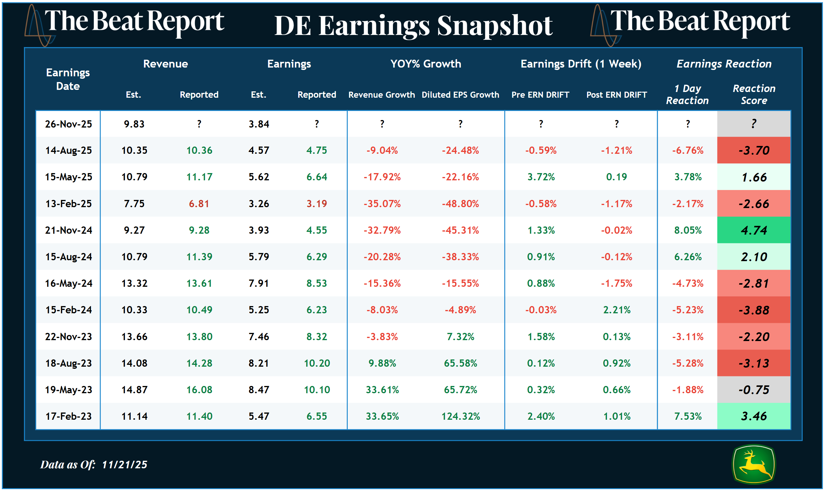 Here are the past three years of earnings results & reactions for DE πŸ‘‡