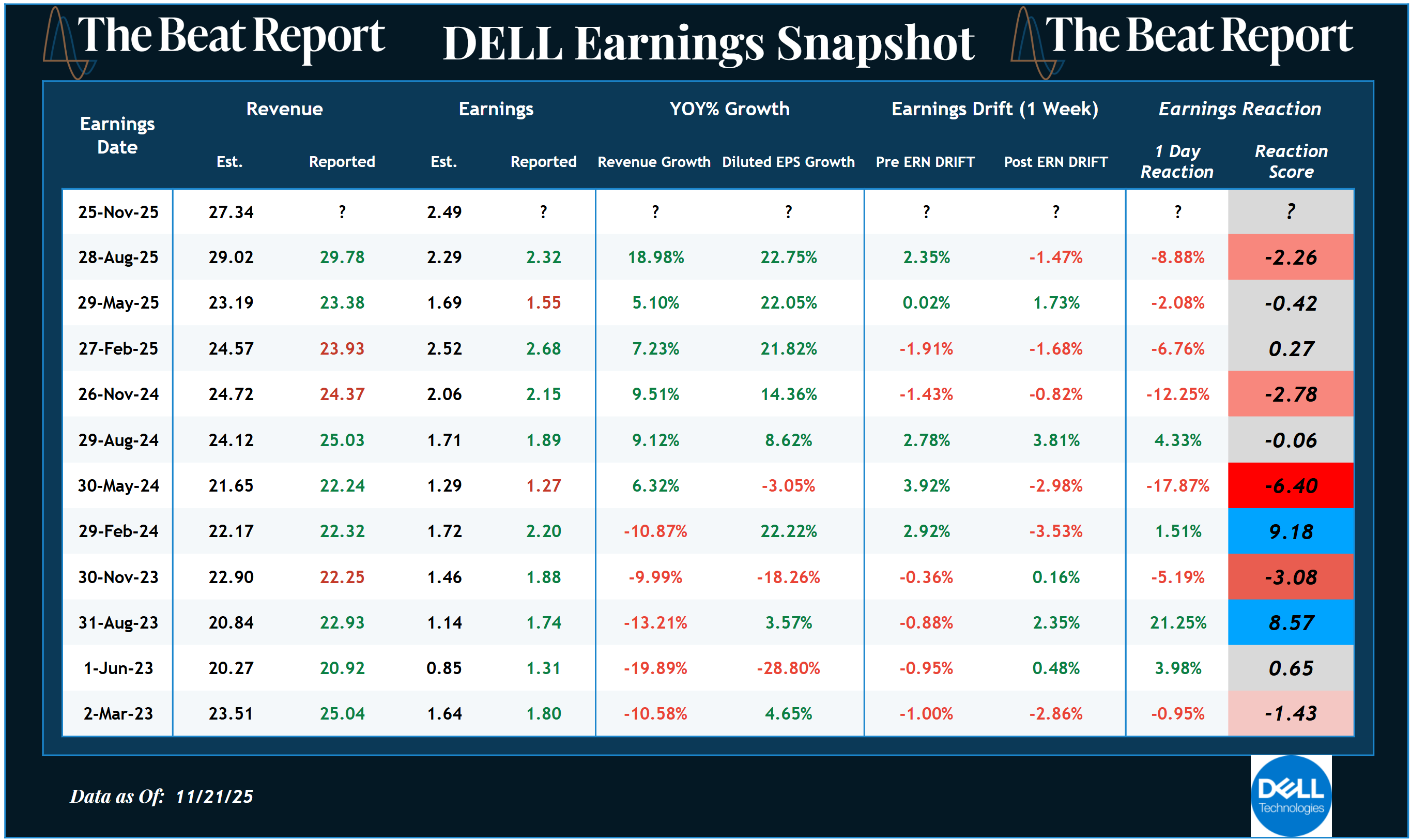 Based on DELL's recent track record, we expect another negative earnings reaction next week.