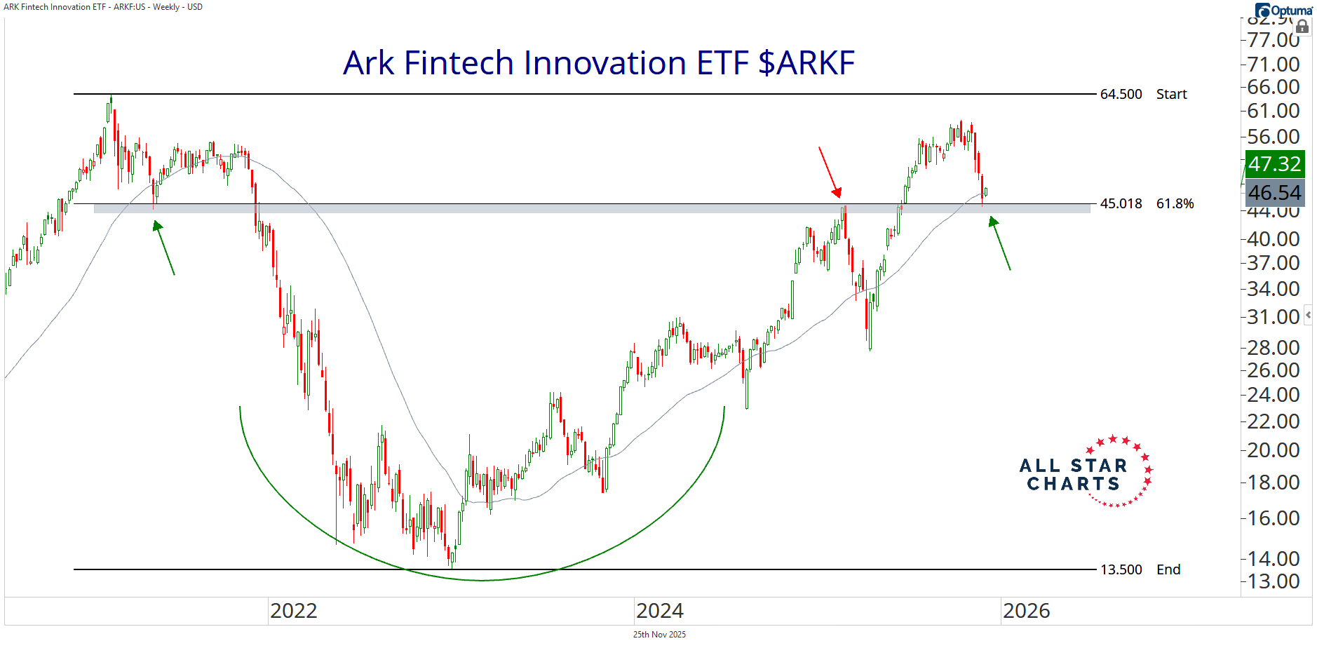 One question came from my friend Larry Thompson, who brought up the ARK funds and noted how these charts are approaching key levels of interest.