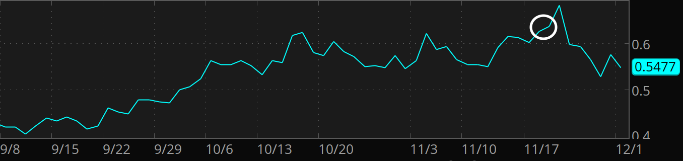 This was a trade I entered on November 19th using December expiration options.