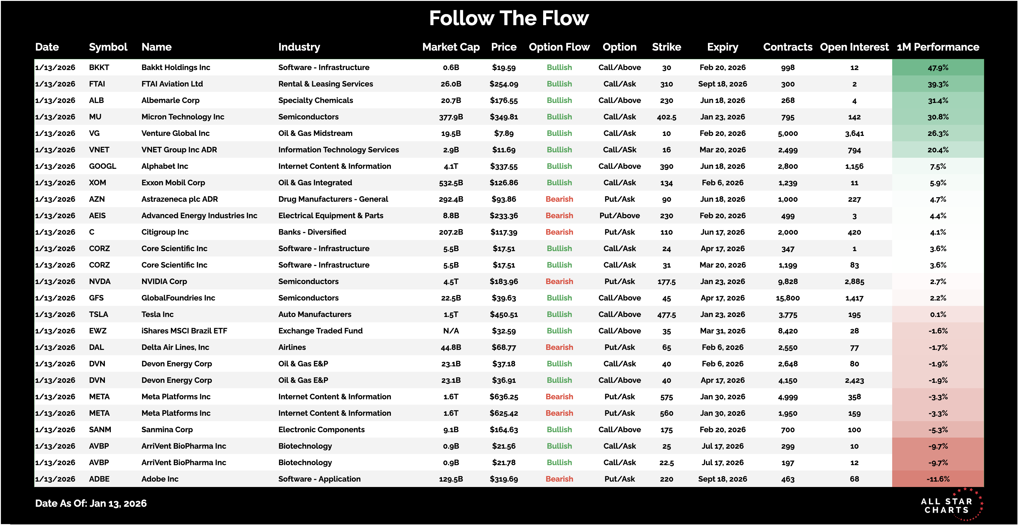 Here is the list of Unusual Options activity from January 13: