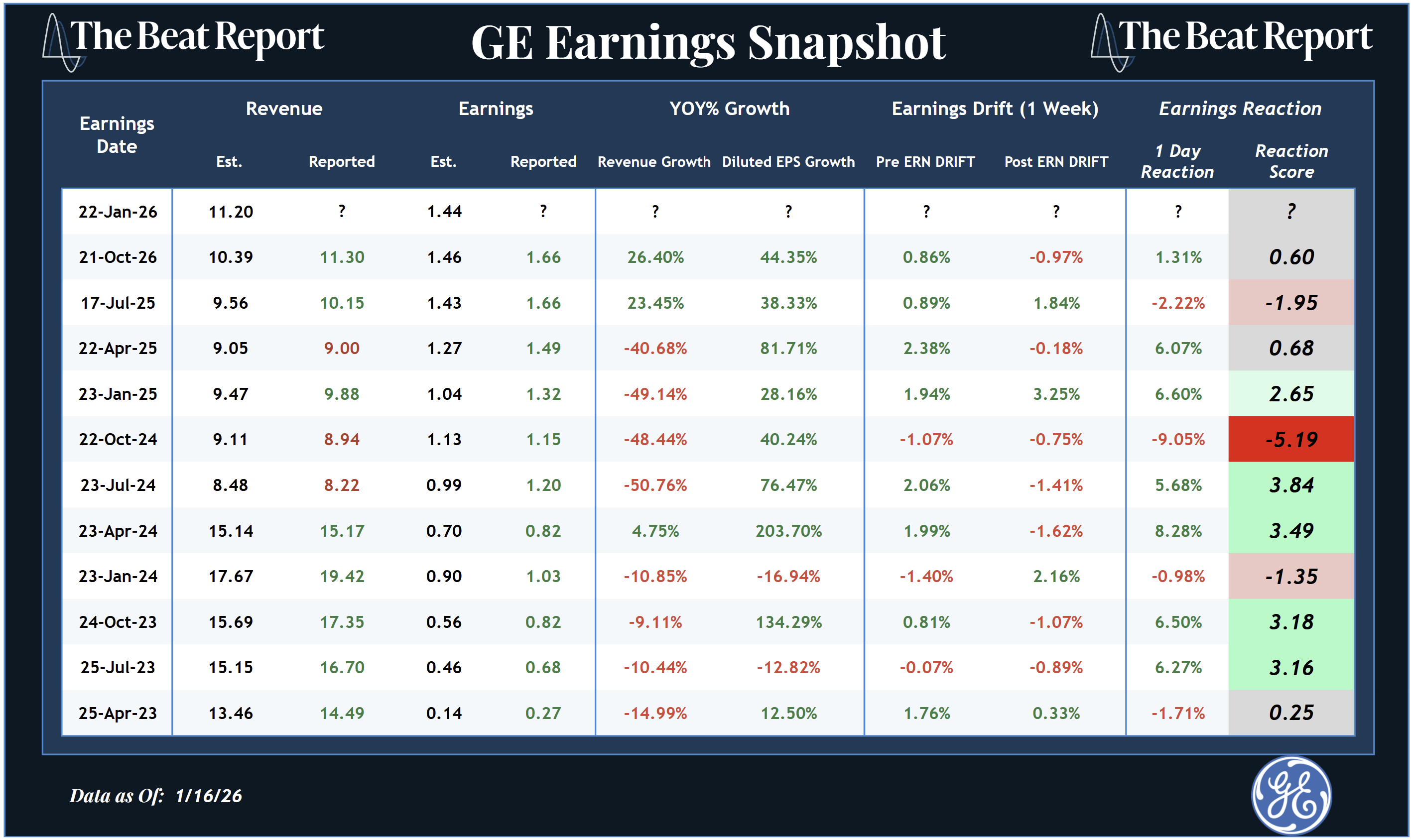 One consistent feature in GE’s history is positive pre-earnings drift, as investors position ahead of results.