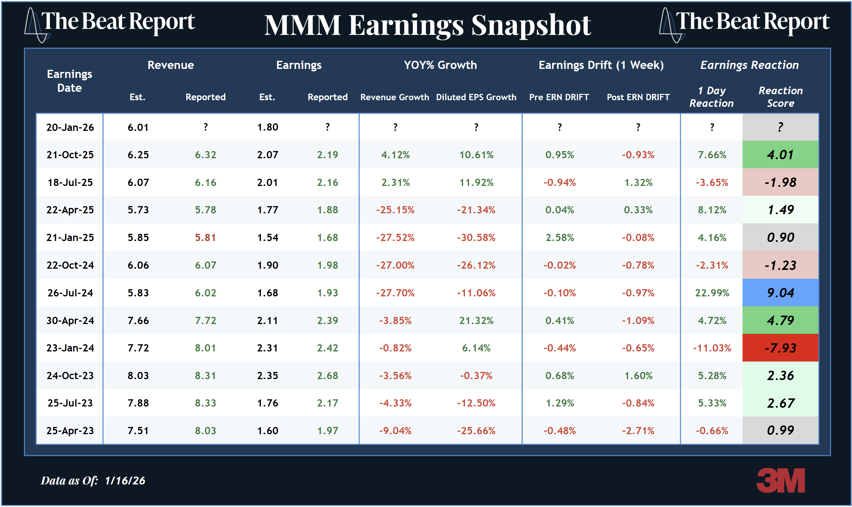 Like many mature industrials, 3M almost always beats headline expectations, but those beats haven’t consistently translated into positive stock reactions.