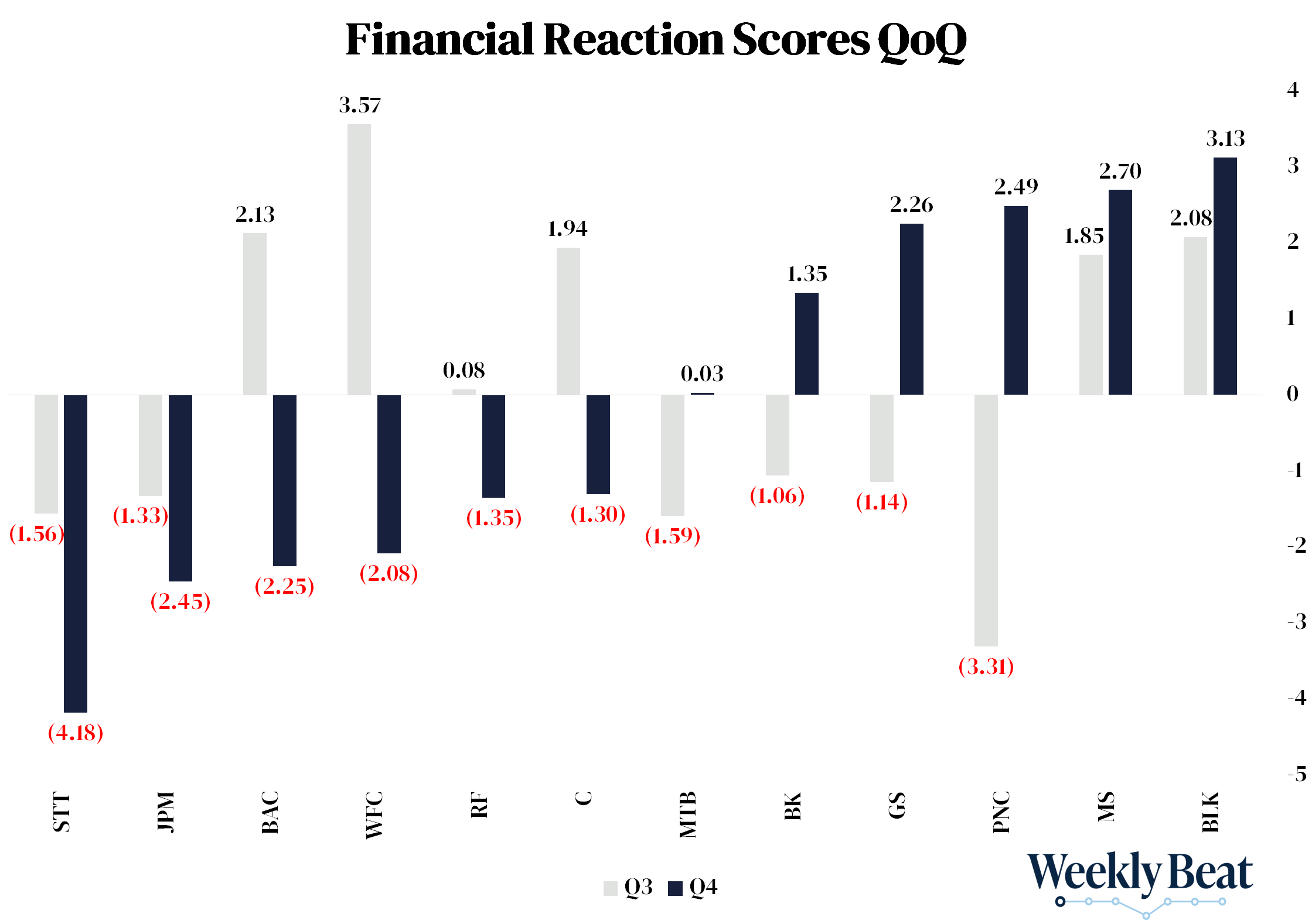 JPMorgan, the world’s largest bank, posted a reaction score of -2.45, nearly twice as bad as last quarter. That’s not the kind of message you want to see from the center of the global financial system.
