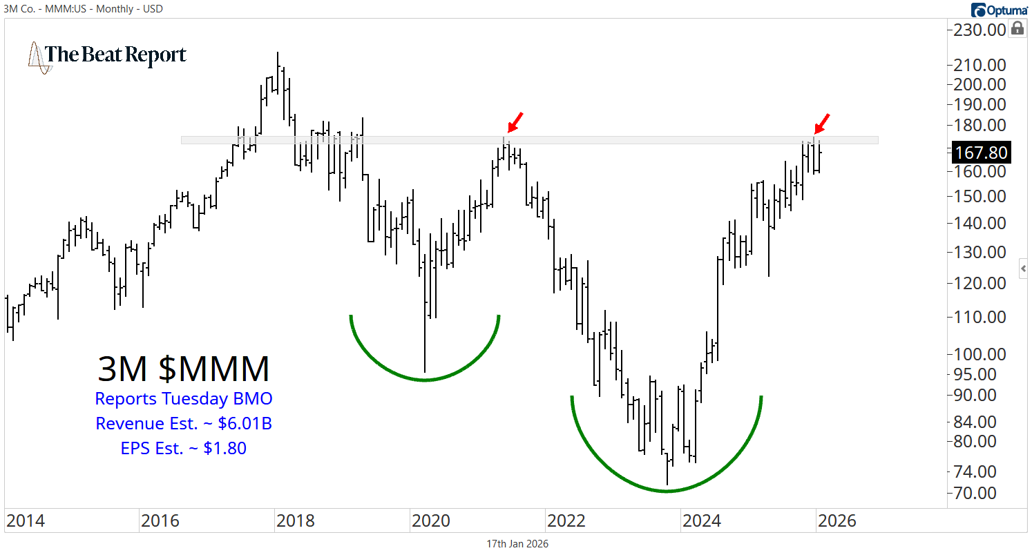 Ahead of the report, MMM is pressing up against a resistance level that has held for years. This makes the upcoming report particularly important, as earnings could be the catalyst that finally resolves this long-term consolidation.