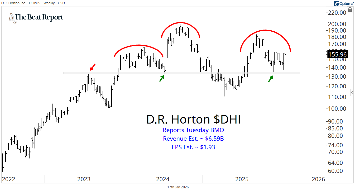 We finish the week with D.R. Horton, which also reports on Tuesday before the open. Expectations are for $6.59B in revenue and $1.93 in earnings per share.