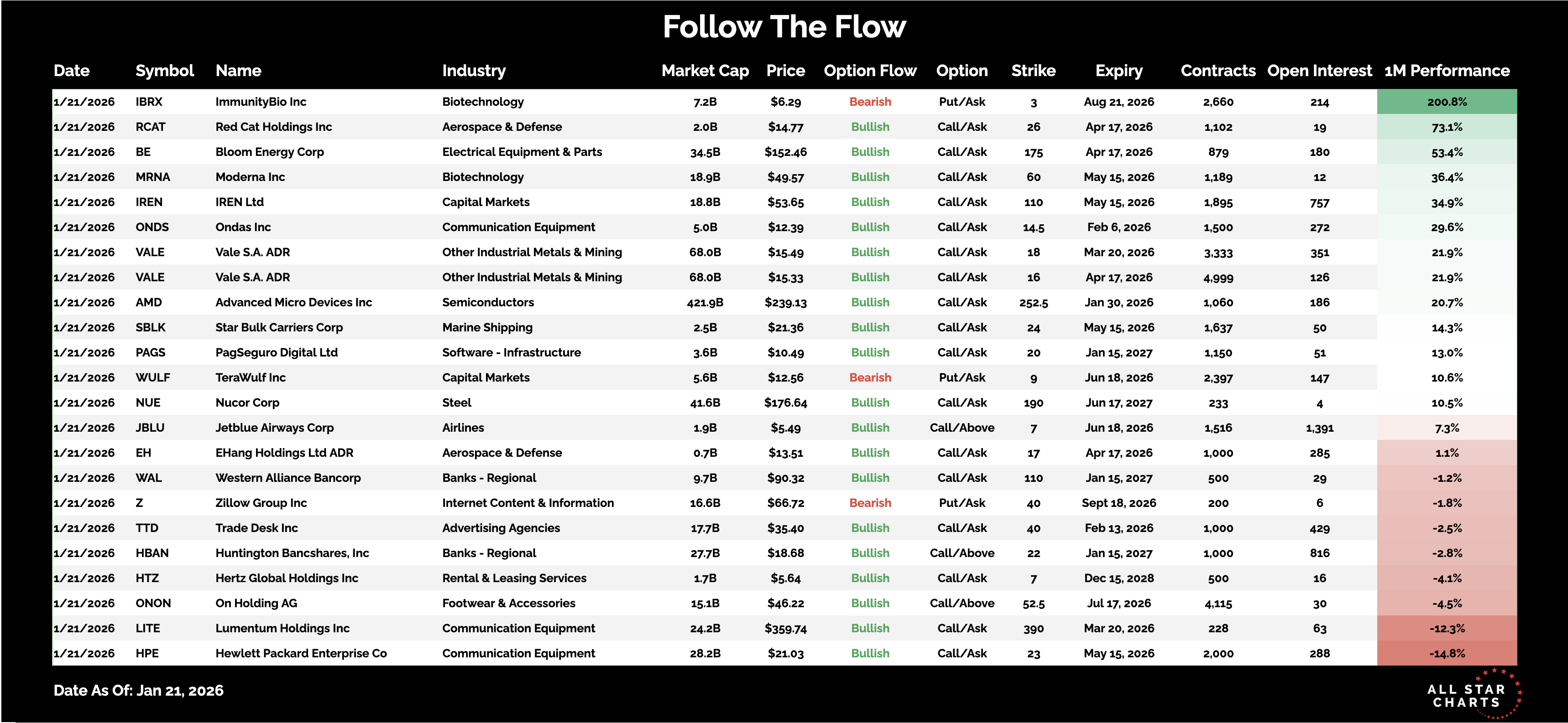 Here is the list of Unusual Options activity from January 21: