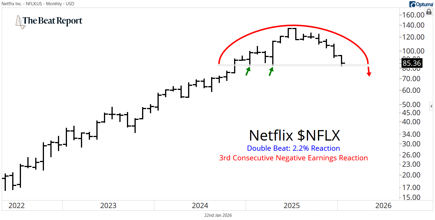 NFLX had its 3rd consecutive negative earnings reaction🩸