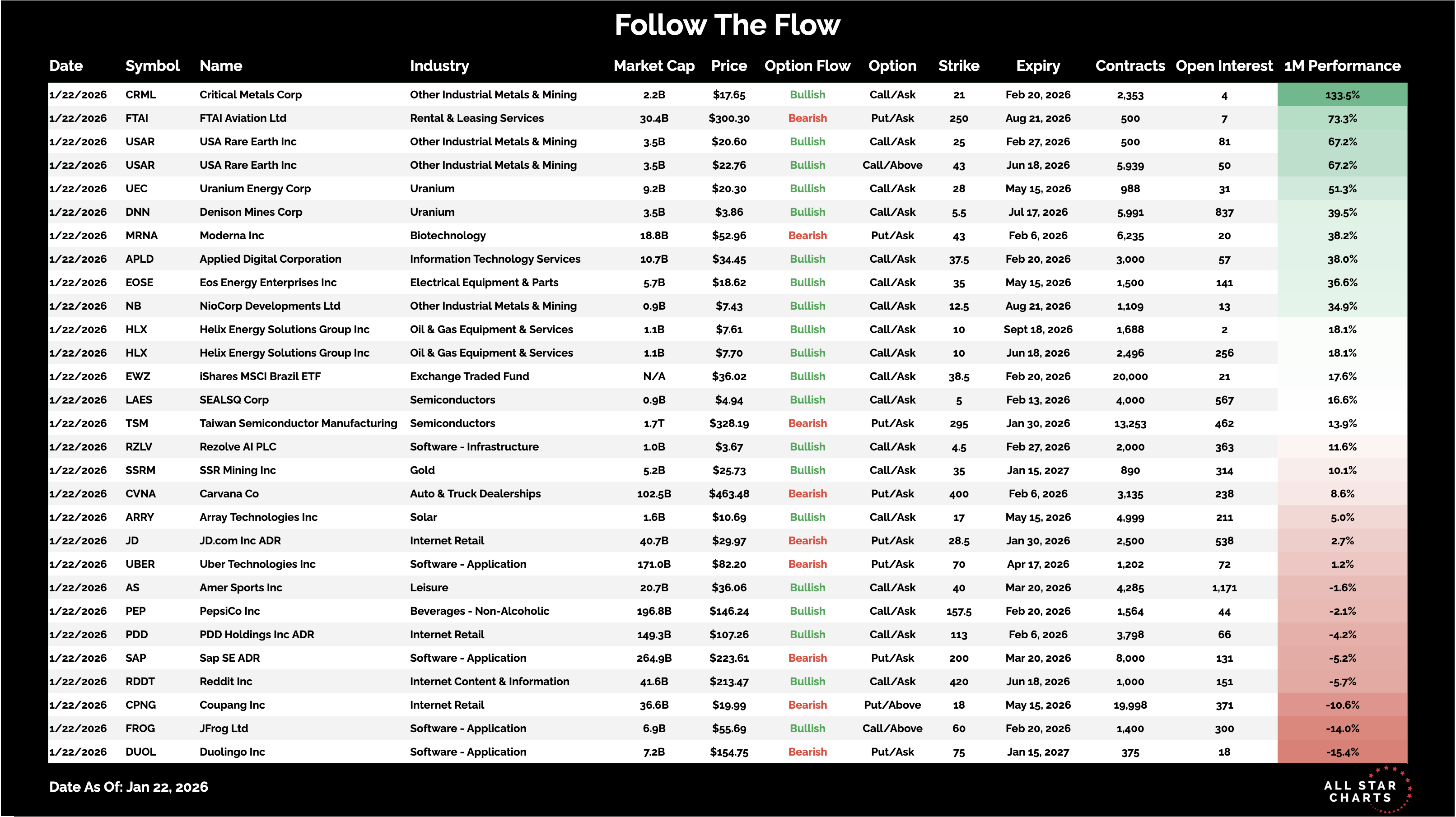 Here is the list of Unusual Options activity from January 22: