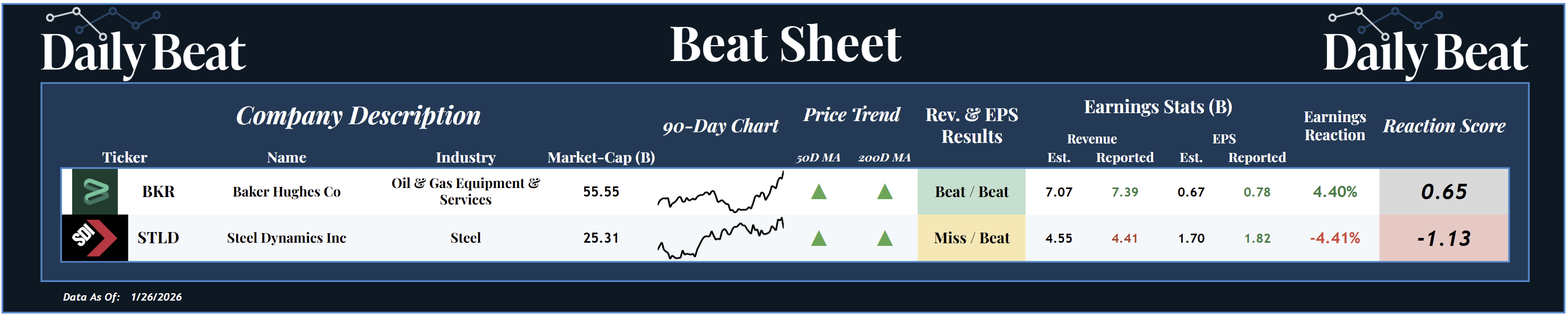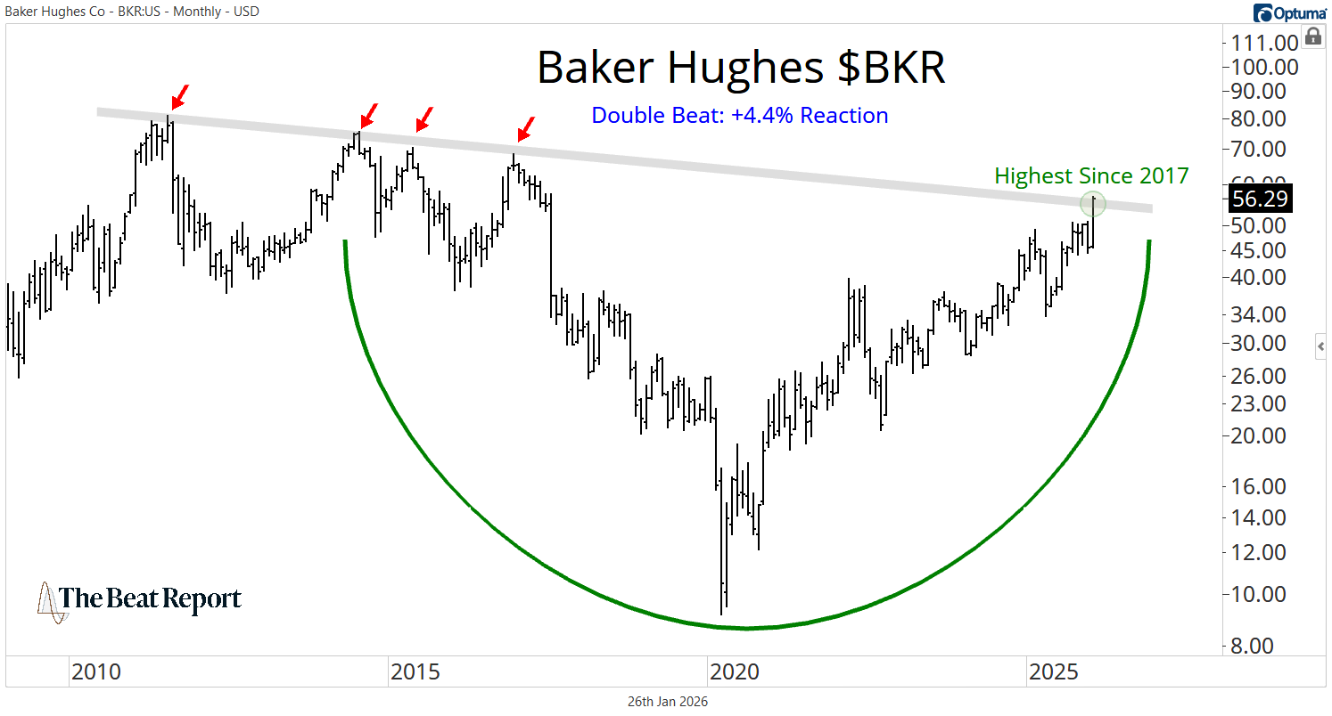 At the top of Monday's Beat Sheet was the $55B oil & gas equipment & services stock, Baker Hughes $BKR. After beating headline expectations across the board, shareholders were rewarded with a +0.65 reaction score.