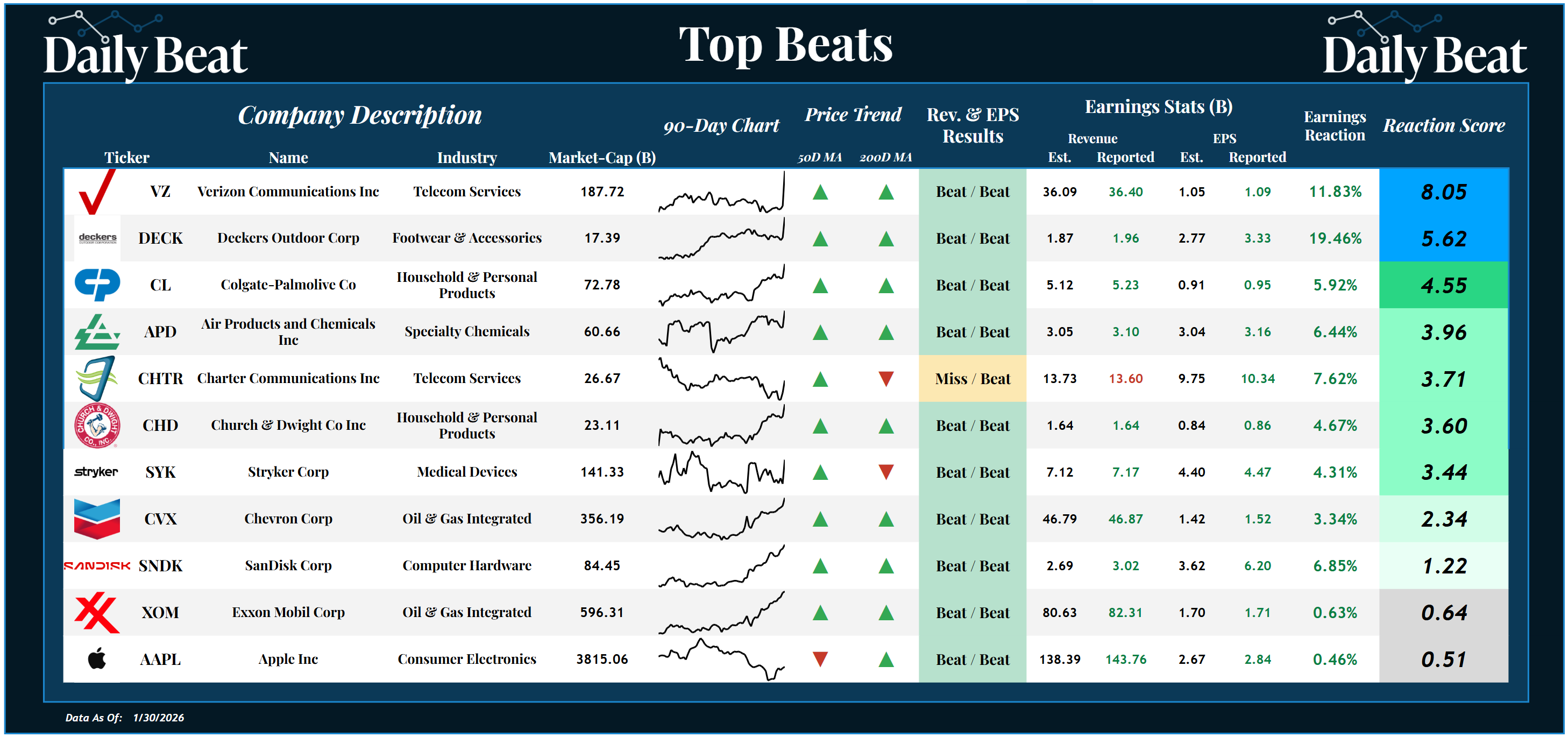 In the Daily Beat, we spotlight the most important S&P 500 earnings moves from the prior session: the winners, the losers, and the reactions that reveal what really matters to the market right now.
