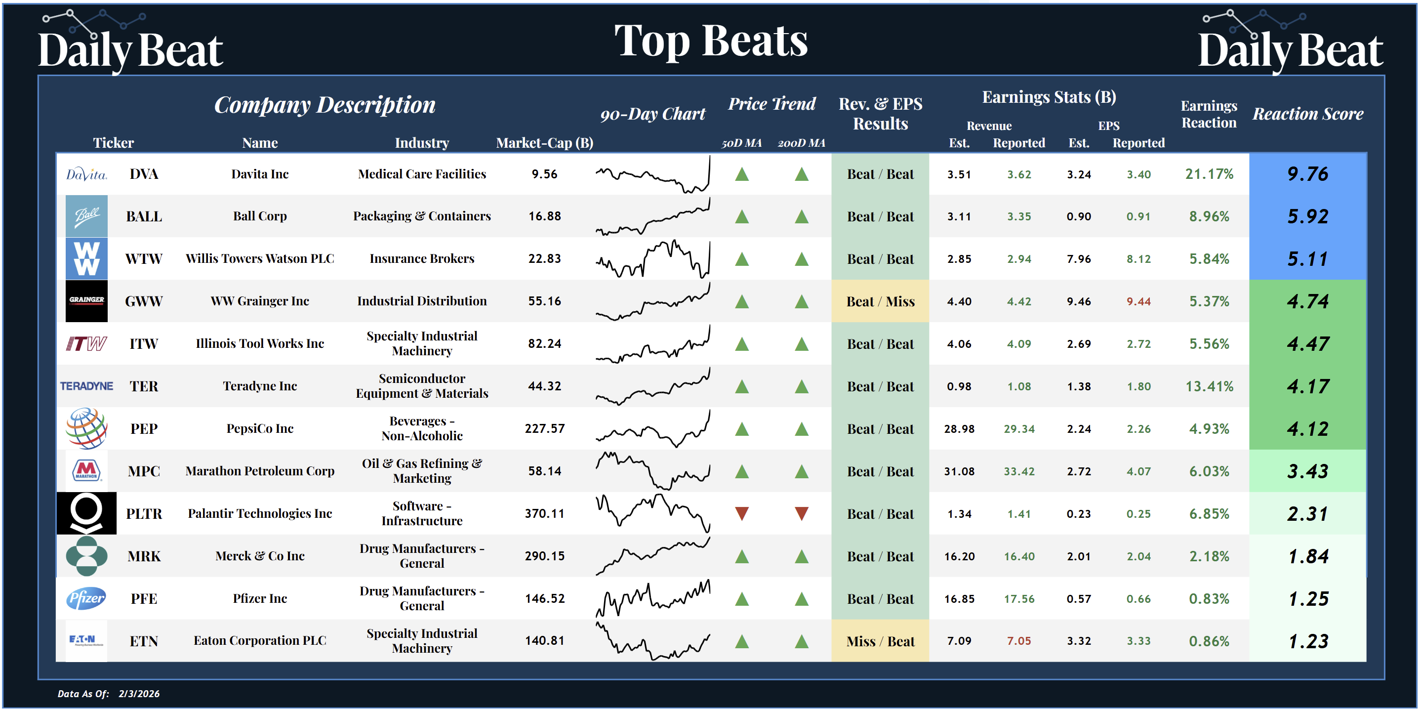 In the Daily Beat, we spotlight the most important S&P 500 earnings moves from the prior session: the winners, the losers, and the reactions that reveal what really matters to the market right now.