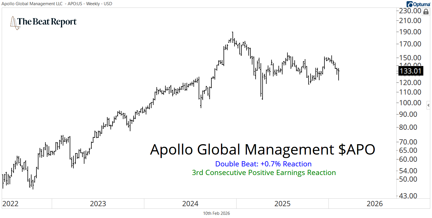 At the top of Monday's Beat Sheet was the $80B asset management stock, Apollo Global Management $APO. After posting a double beat, the stock had a slightly negative reaction score.