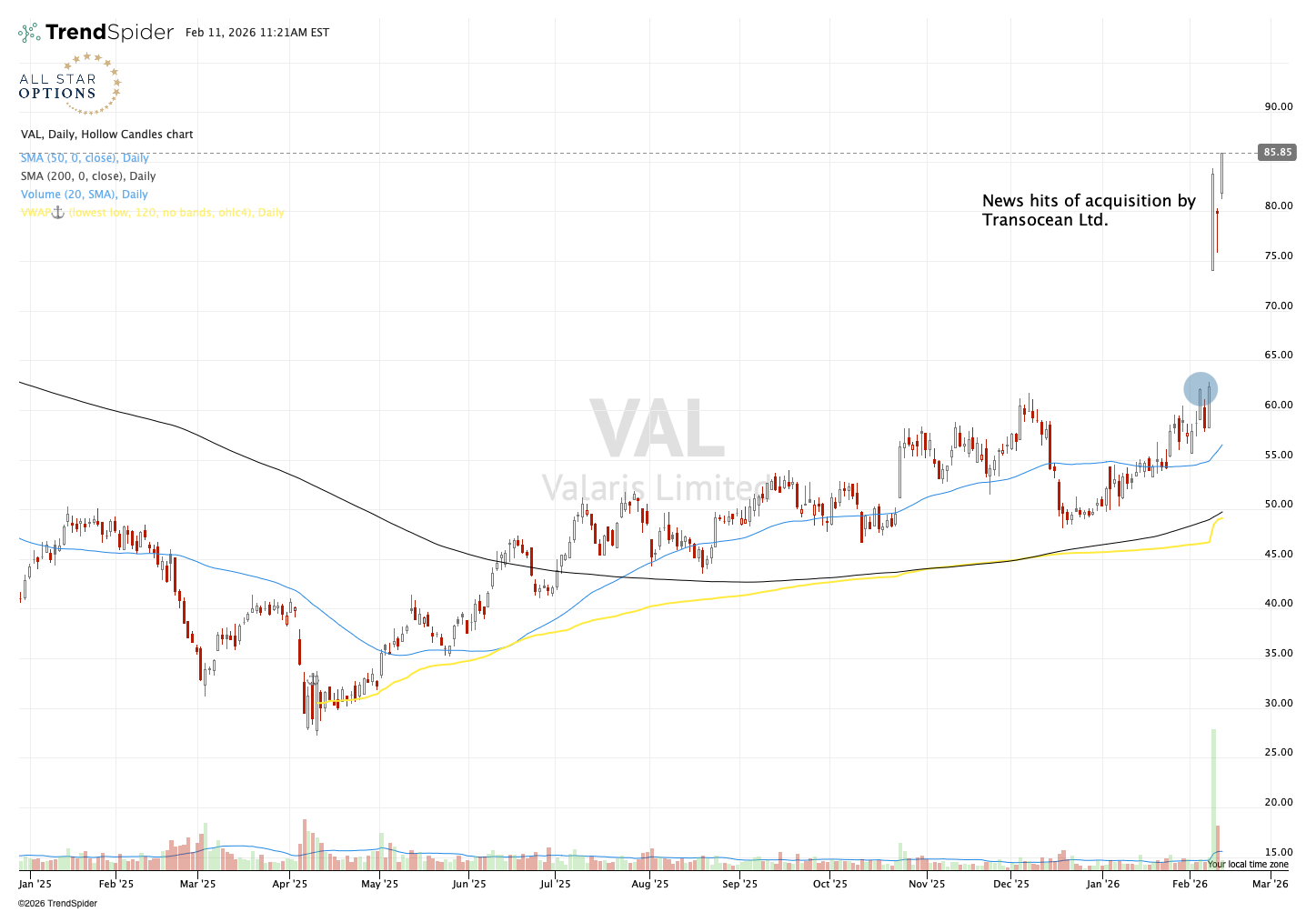 Last Wednesday, I bought March 62.50 calls in Valaris $VAL as the stock was breaking out above $61.50 per share—a fresh 52-week high. That's a pattern I repeatedly buy.