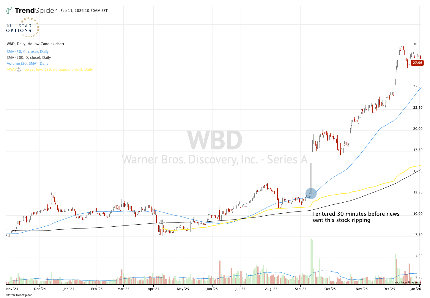 Did I know that literally 30 minutes after I entered, news would hit the tape that Warner Bros Discovery was in talks to be purchased by a competitor? Hell no. But I was positioned to win. Was this blind luck, or did I create my own luck?