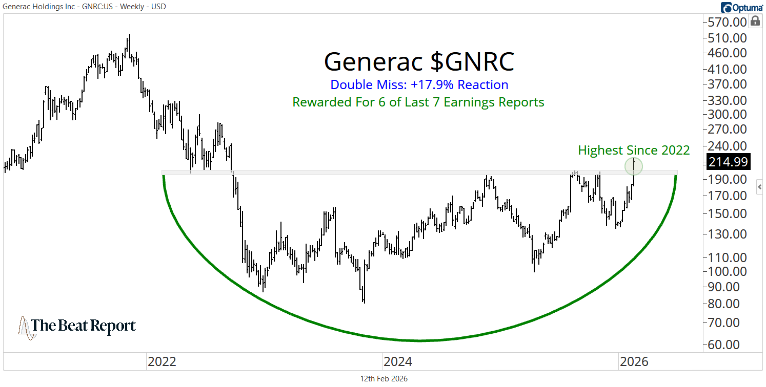 At the top of Wednesday's Beat Sheet was the $12.6B specialty industrial machinery stock, Generac $GNRC. Despite missing expectations across the board, shareholders were rewarded with a +6.94 reaction score.