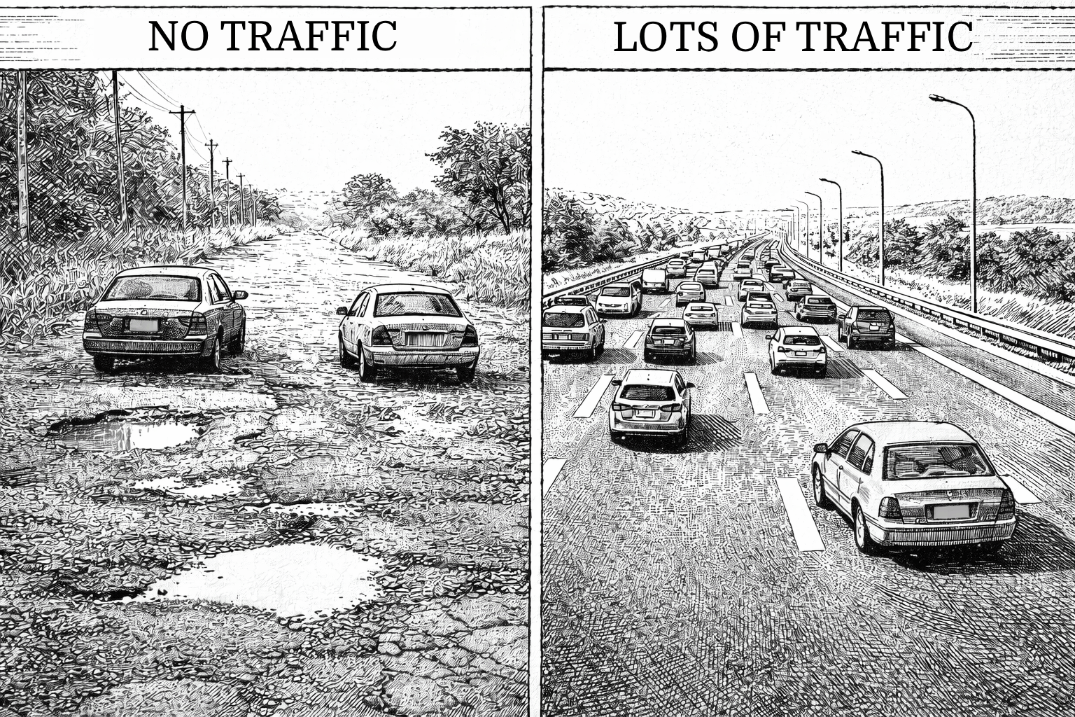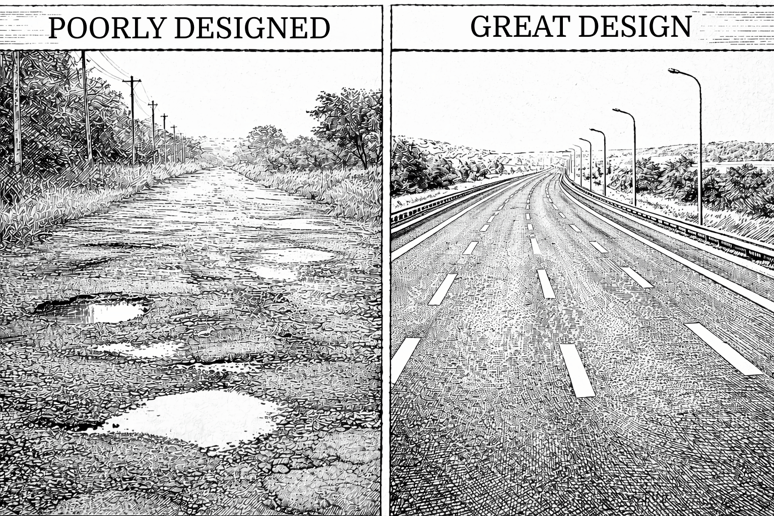 Just because a road is well designed doesn't mean it's necessary. If the world's best road was in Antarctica, no one would use it.