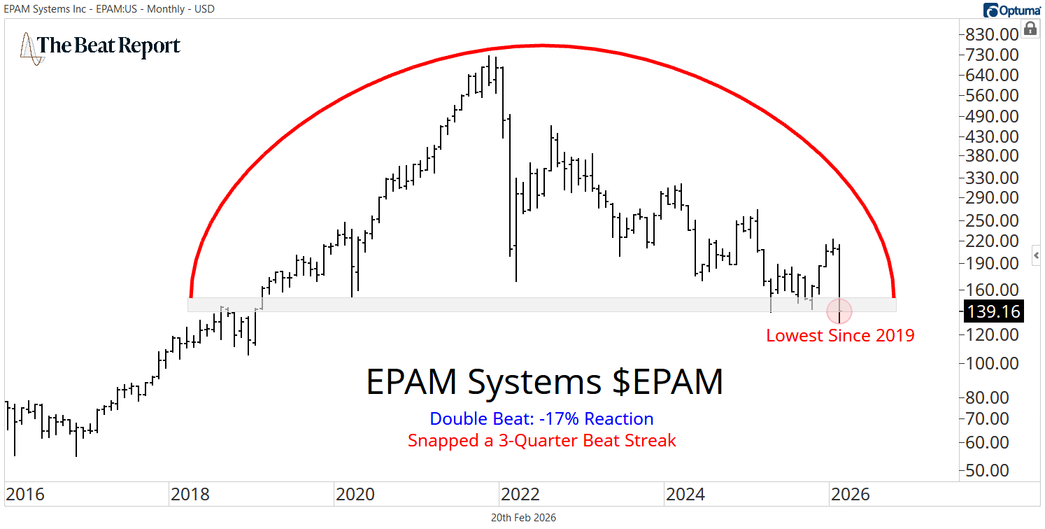 Thursday's bottom beat came from the $8B tech stock, EPAM Systems $EPAM. Despite a big double beat, shareholders suffered a -6.55 reaction score.