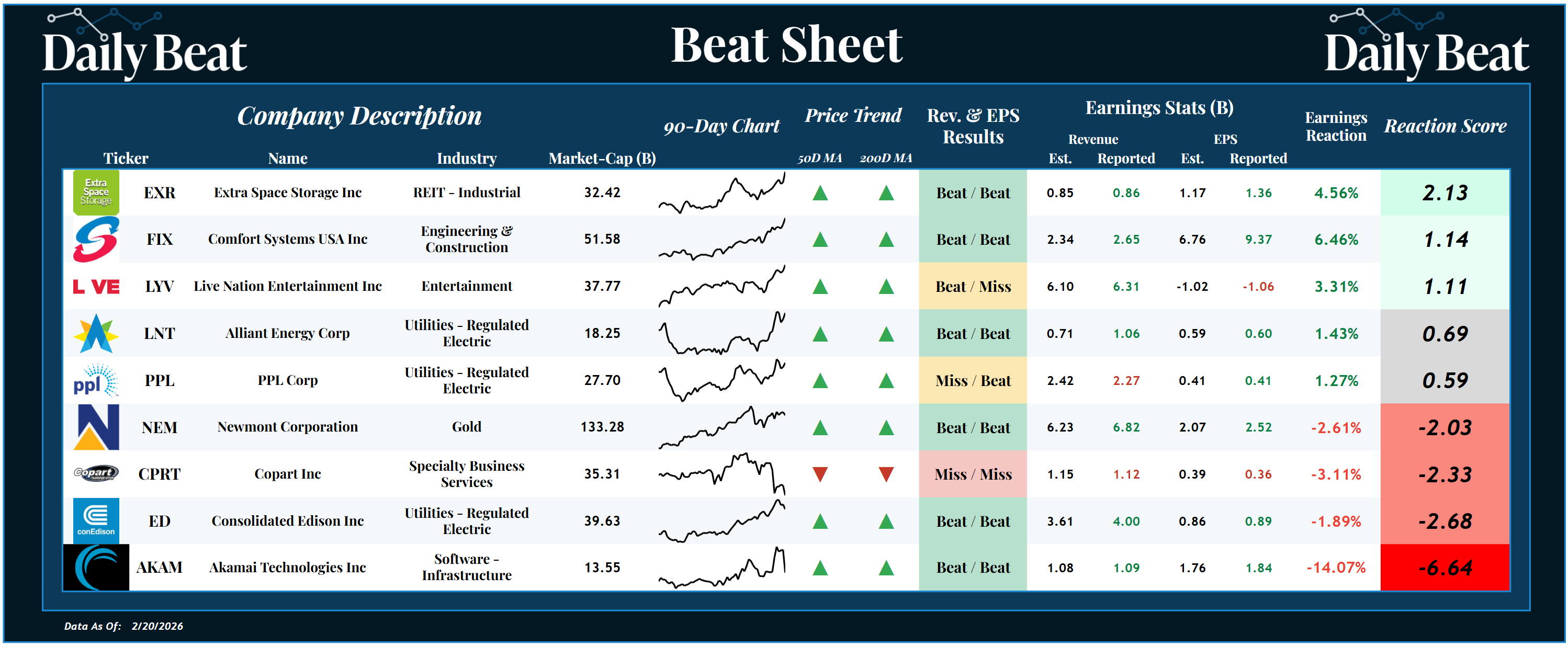 At the top of Friday's Beat Sheet was the $32B industrial REIT stock, Extra Space Storage $EXR. After beating expectations across the board, shareholders were rewarded with a +2.13 reaction score.
