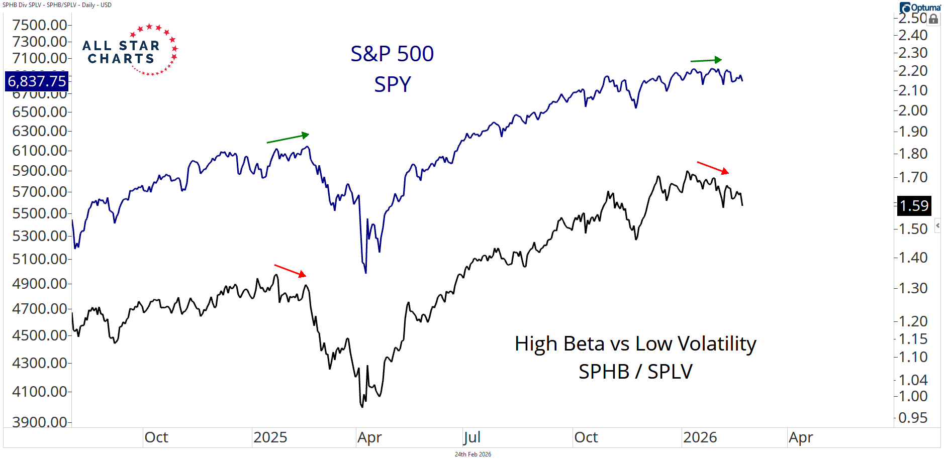 The same dynamic is showing up in the High Beta vs. Low Volatility ratio.