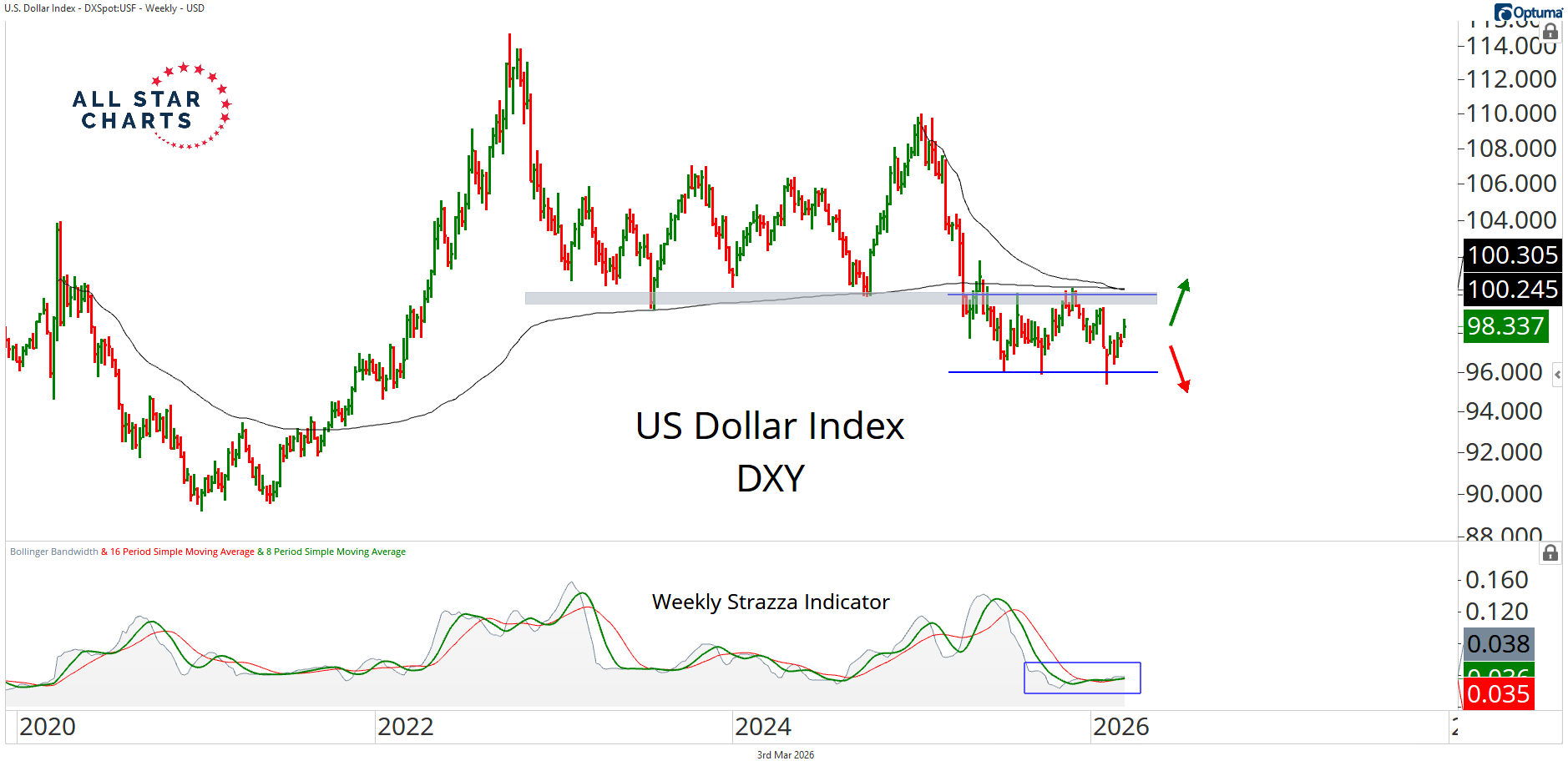 Ranges like this are stored energy, and right now, the DXY is sitting at one of its most compressed volatility levels in years.