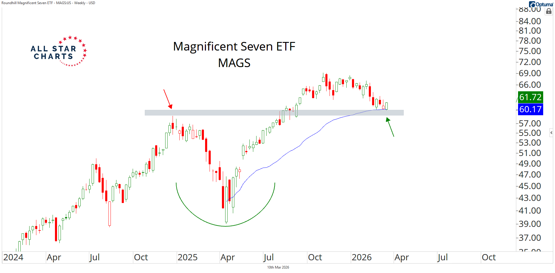 The Roundhill Magnificent Seven ETF is finding support right at a key zone.