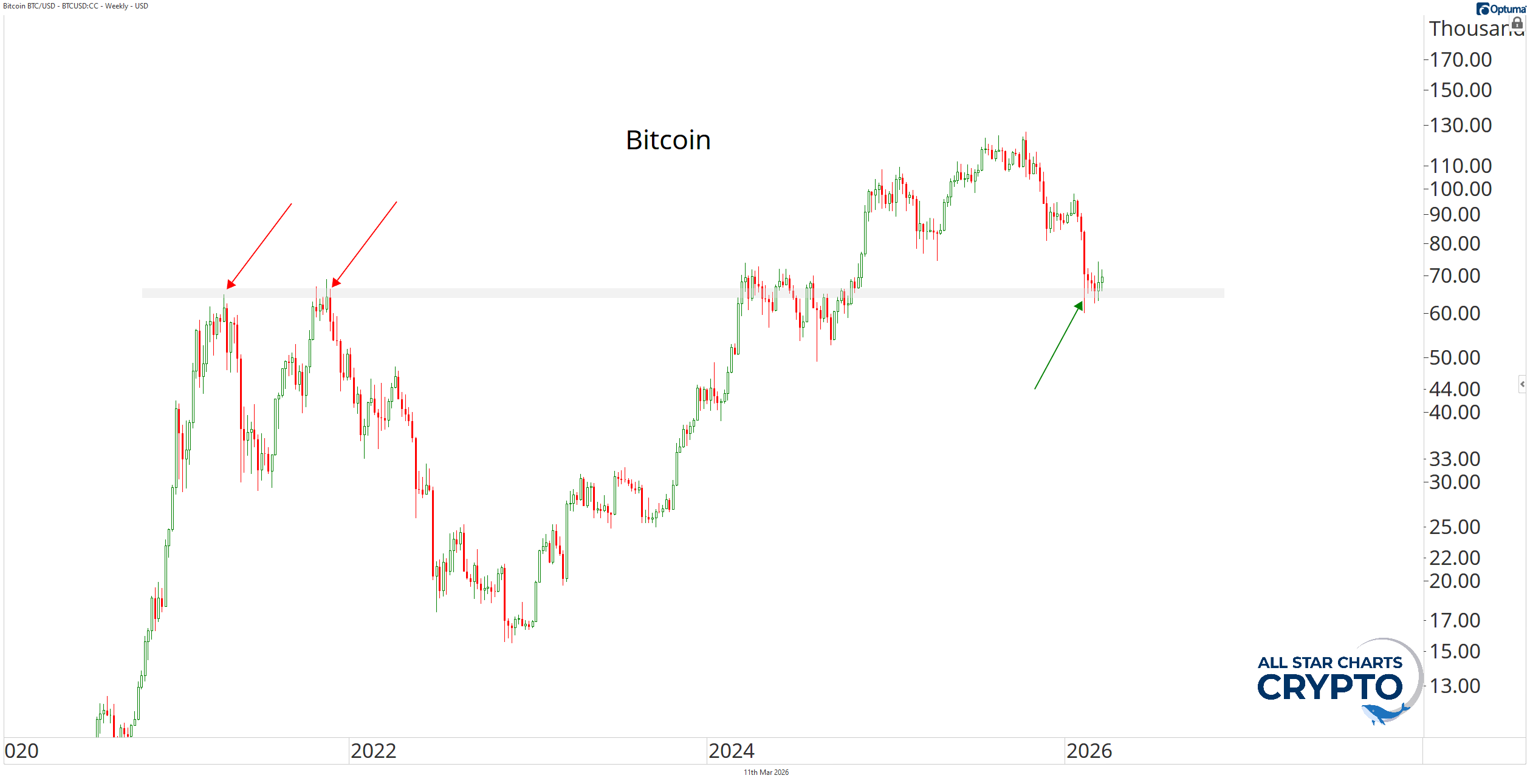 We've got two positive weekly candles as price retests that level. The confirmation I'm watching for is a break above the AVWAP from the YTD highs (the black line on the chart).