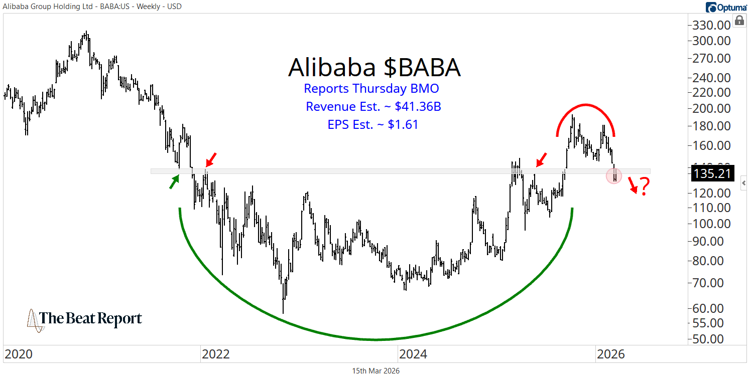 Unlike Micron, Alibaba enters earnings with a much weaker technical setup.