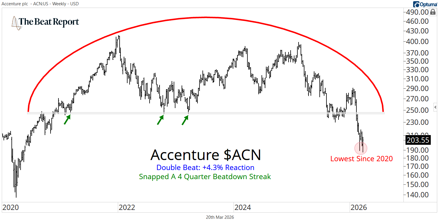 Accenture $ACN delivered a clean double beat and rallied +4.3%, posting the highest reaction score on the board.